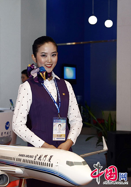 16日,第八届中国国际航空航天博览会在珠海正式拉开大幕,本届航展将以其“专业、安全、绿色、文明”的鲜明特色展示国际航空航天业的最新面貌,展示中国航空航天事业日新月异的发展,展示珠海航空产业的腾飞和珠江口西岸核心城市建设的新气象。图片来源:中国网 杨佳 摄