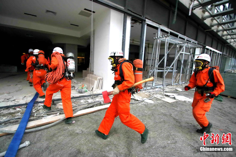 中新网福州11月18日电 (朱晓航 黄绿荣)为吸取“11.15”上海市静安区胶州路在建高层教师公寓楼特大火灾事故教训,福州18日在该市台江区举行了一场大型灭火救援演练。