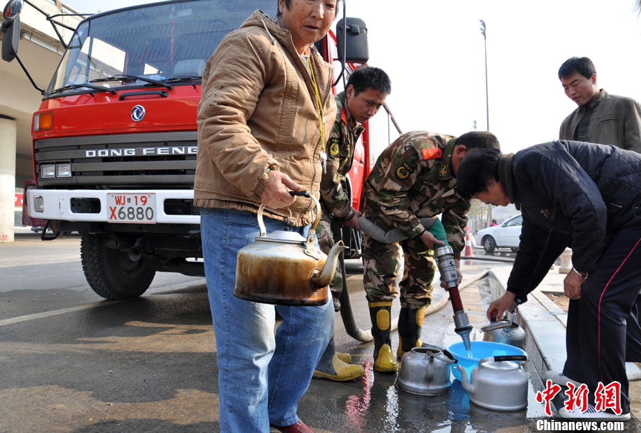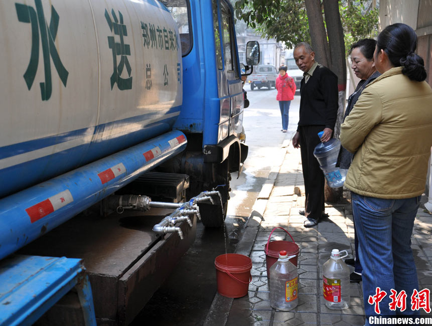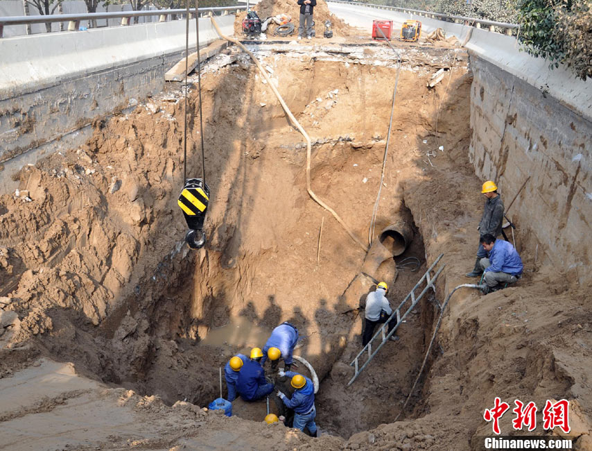 11月18日,河南郑州爆裂自来水管道正在抢修,郑州自来水柿园水厂主管道17日发生爆裂,该水厂是郑州较大的一所水厂,日供水37万立方米。目前该事故影响整个郑州西南部城市供水,几十万居民停水,正在紧急调用其他水厂向西区供水,以满足日常用水需要。中新社发 豫分 摄