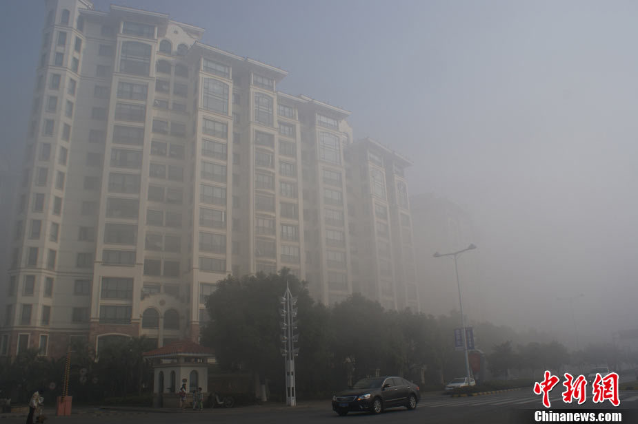 11月20日,辽宁大连市甘井子区轻轨泉水站附近地区被大雾笼罩,城市建筑若隐若现。当日,大连市能见度不足500米。上午8时20分,大连市气象台将此前发布的大雾黄色预警信号升级为红色预警信号。 中新社发 刘德斌 摄 图片来源:CNSPHOTO