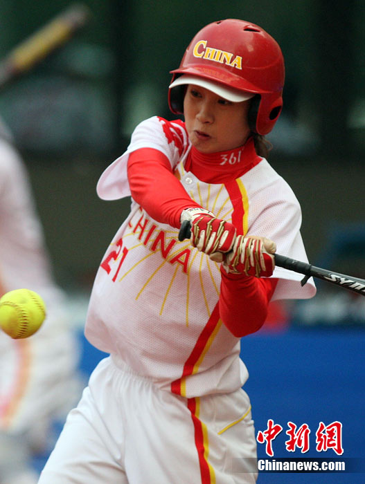 11月20日,广州亚运会垒球预赛第5场,中国队以9比0战胜泰国队,取得预赛2连胜。中国队谭瑛挥棒击球。中新社记者 汤彦俊 摄