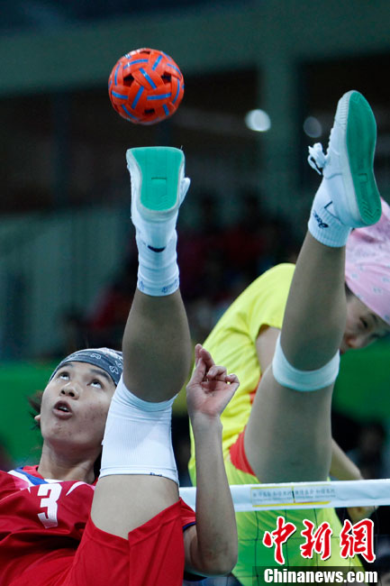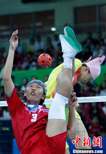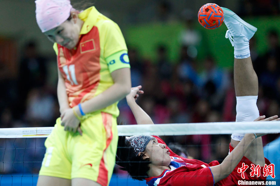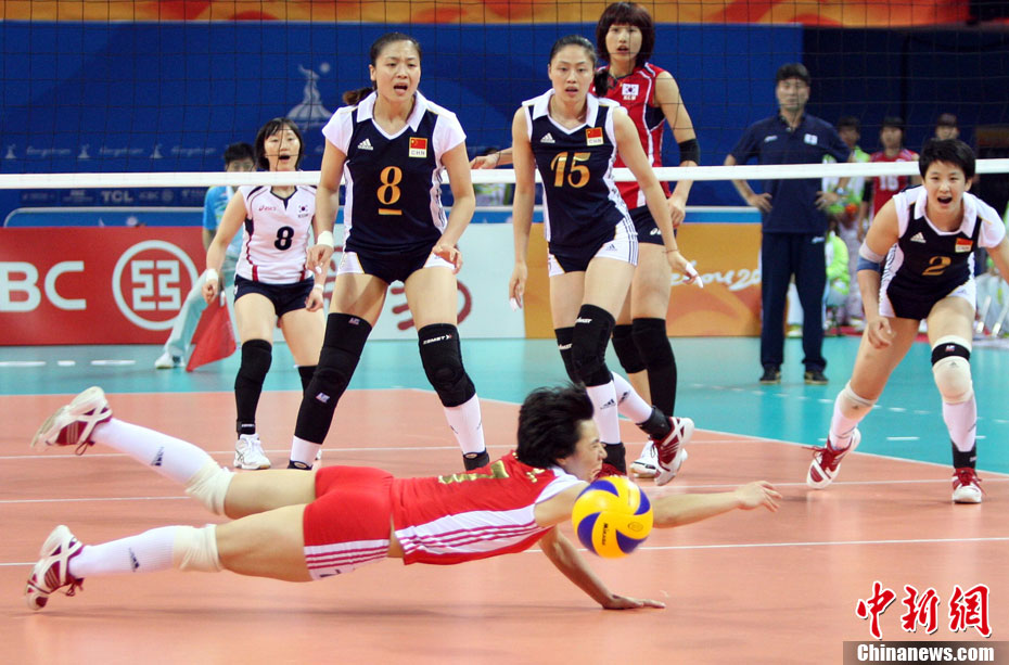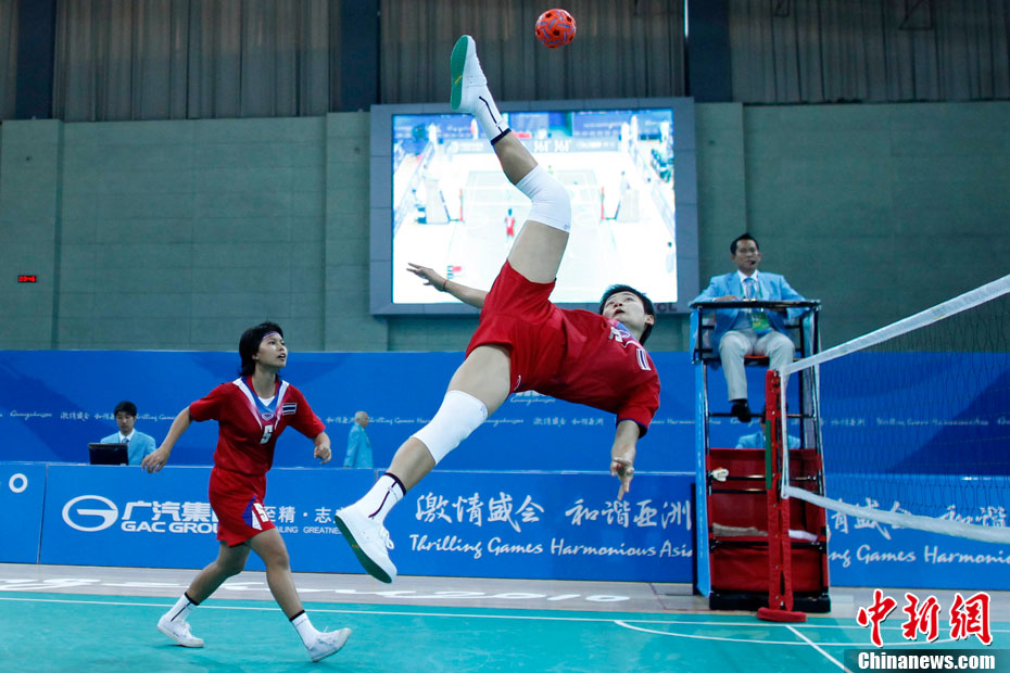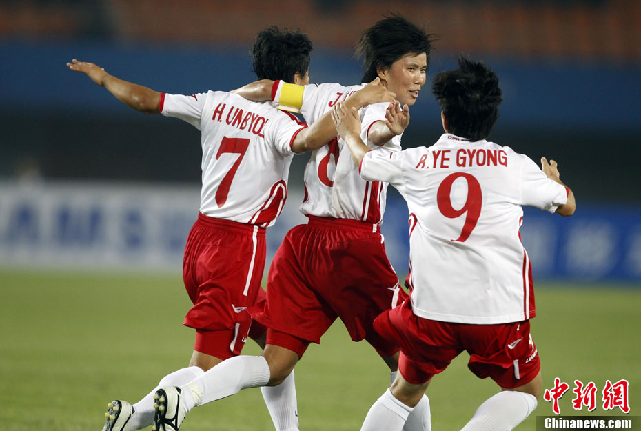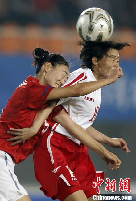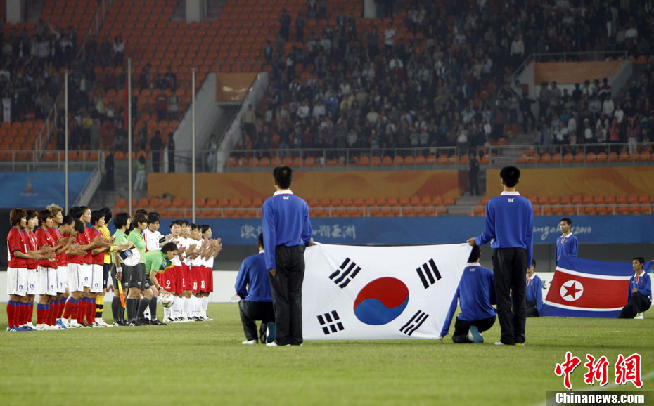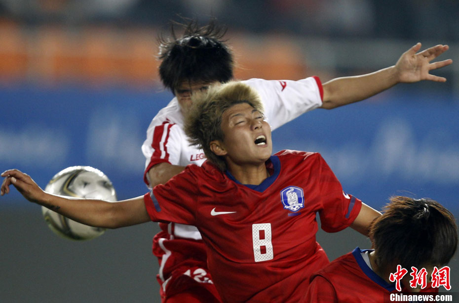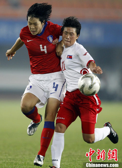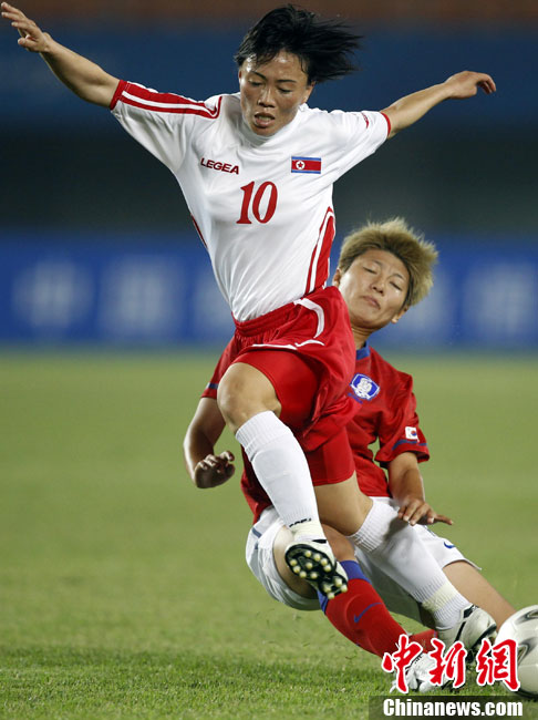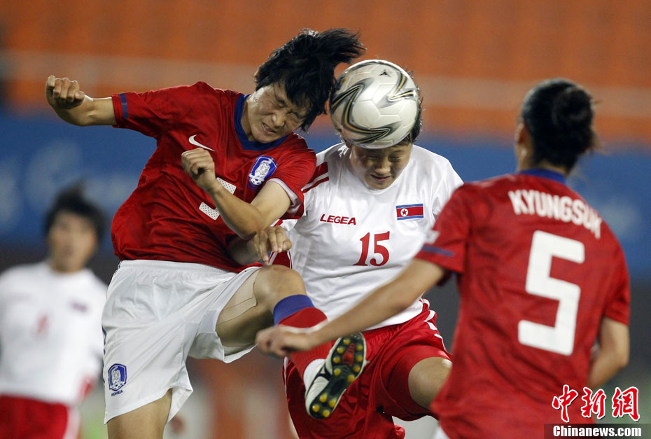 11月20日,广州亚运会女足半决赛在朝鲜与韩国间举行。中新社记者 杜洋 摄