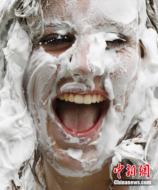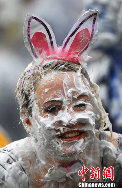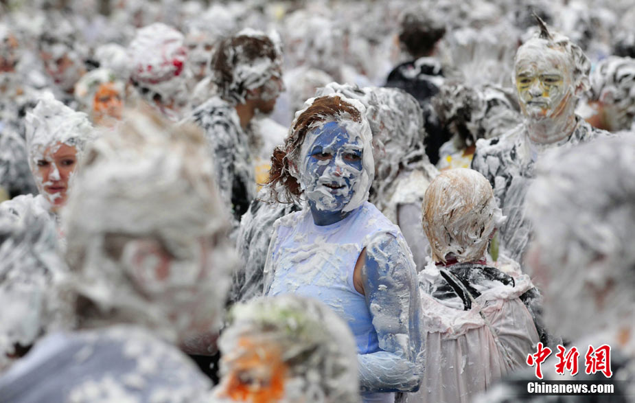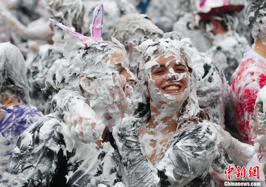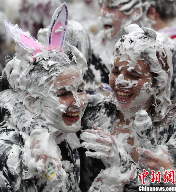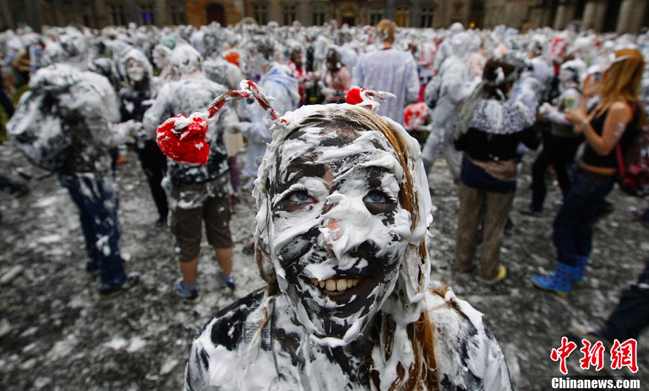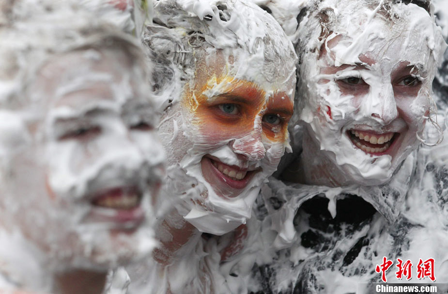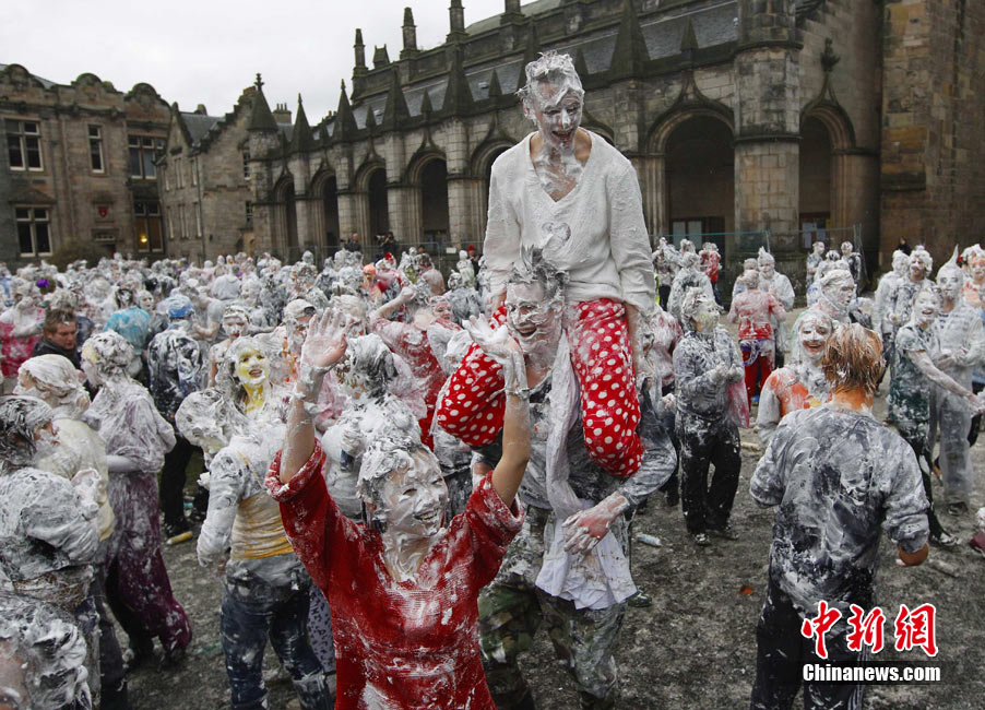 2010年11月22日,在苏格兰圣安德鲁斯大学举行的“周一葡萄干”节中,大学生们进行了一场别开生面的“泡沫大战”。
