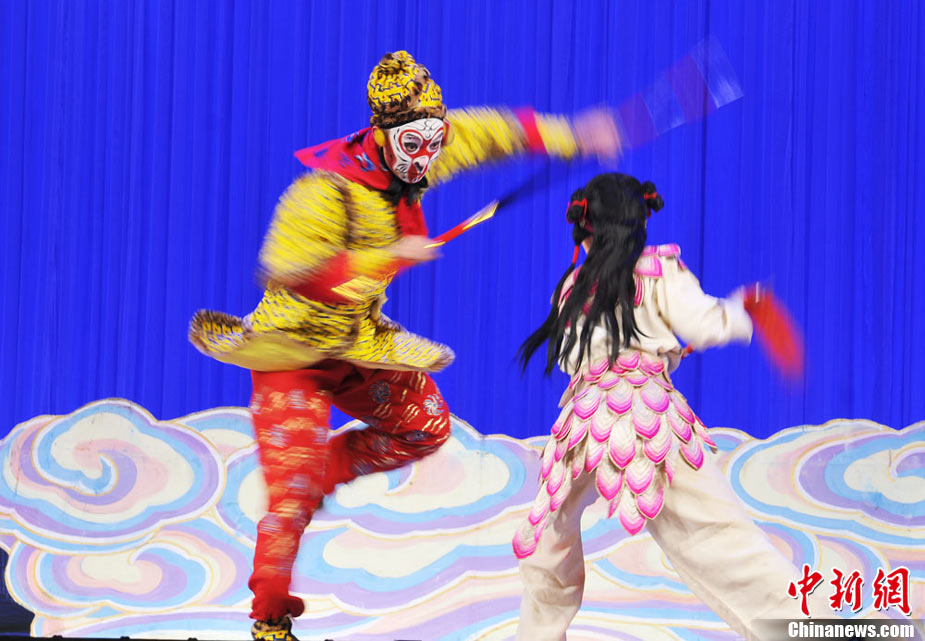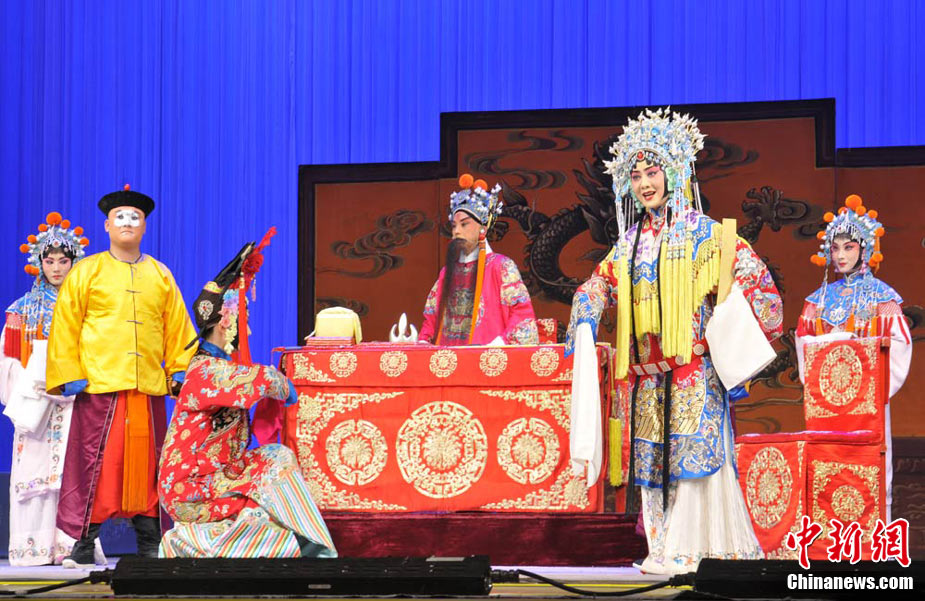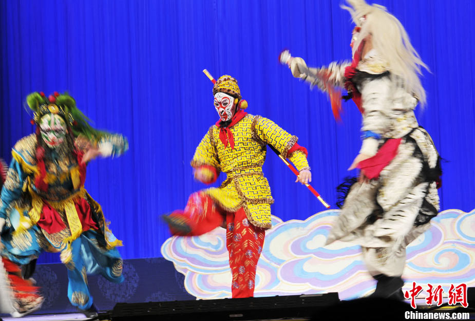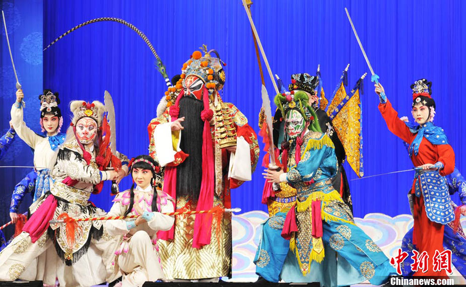 11月23日晚,由京剧名家于魁智率领的国家京剧院一团的京剧演员在兰州金城大剧院为兰州学子送上“京剧名家进校园”精美的文化大餐。这次演出活动是“2010甘肃省高雅艺术进校园”活动的重要组成部分。杨艳敏 摄