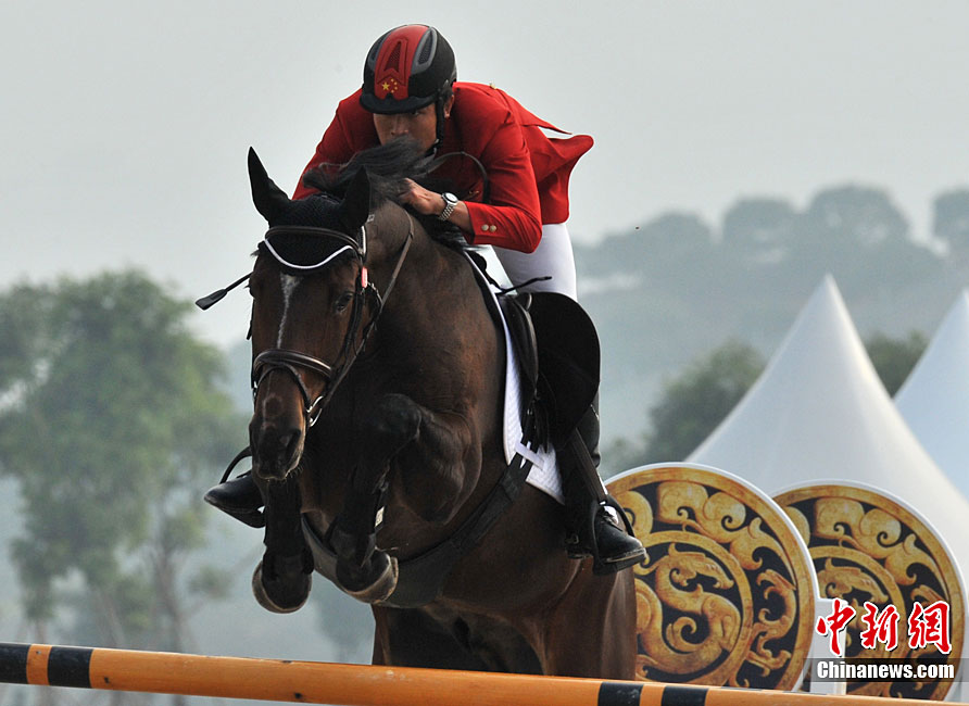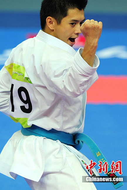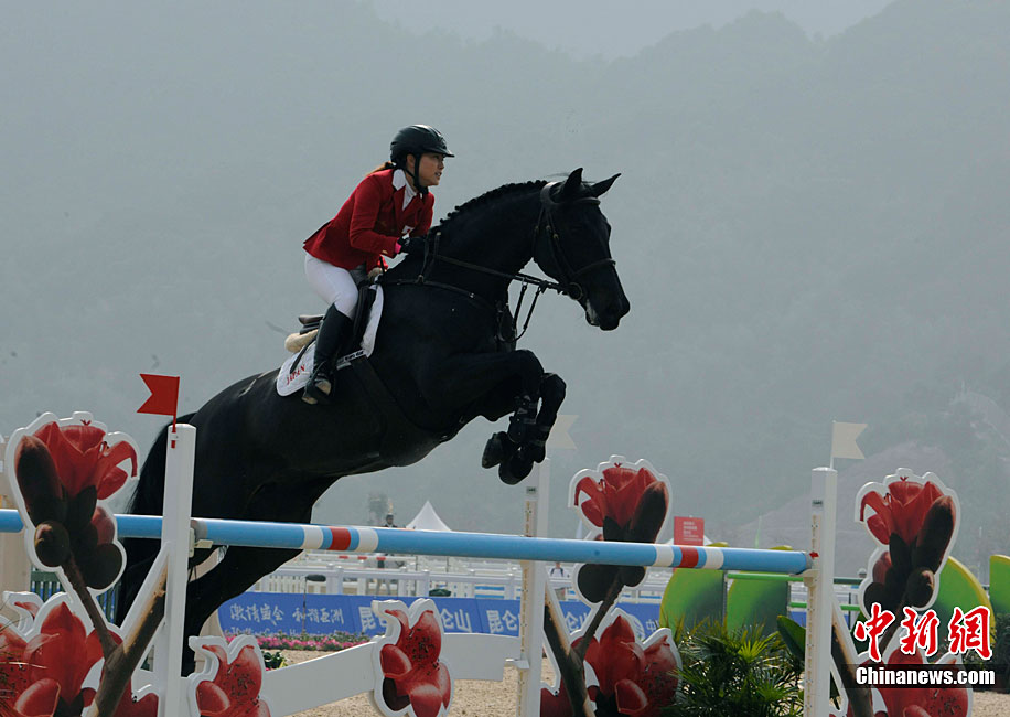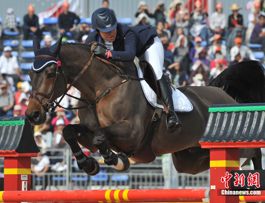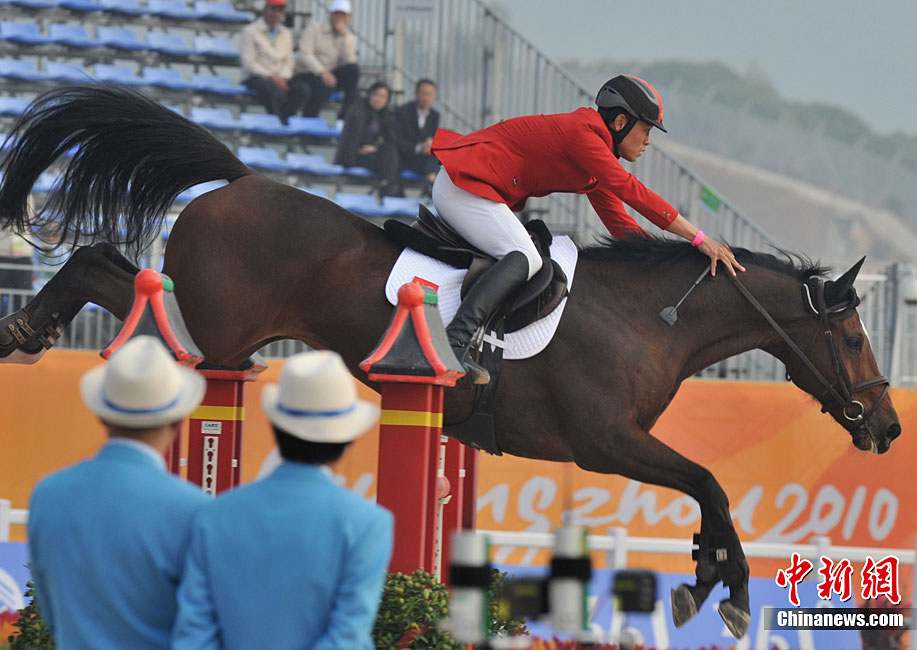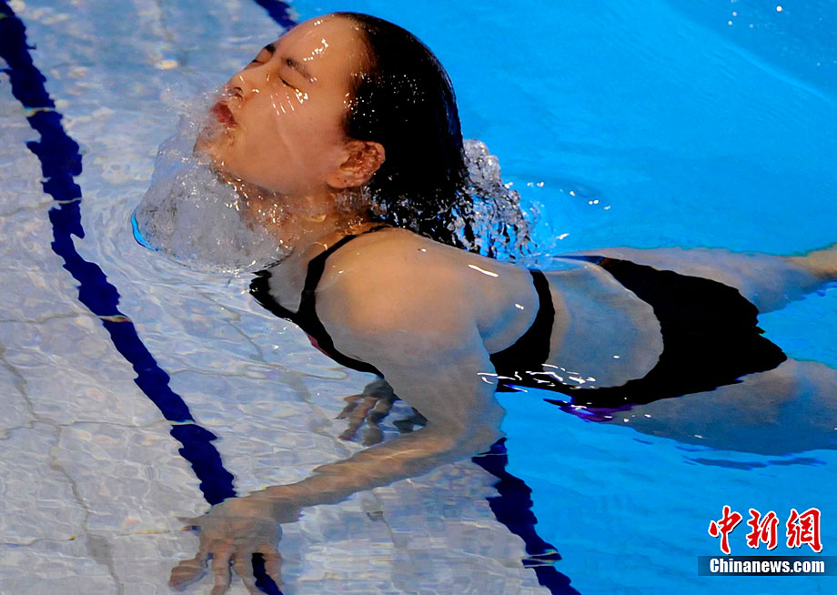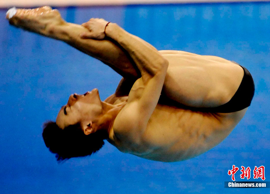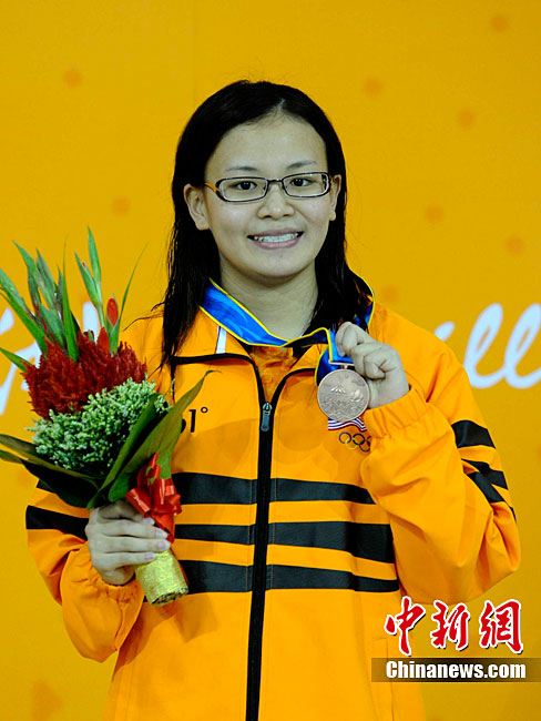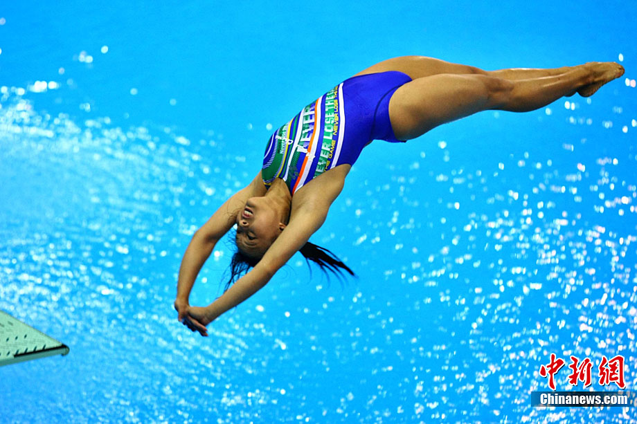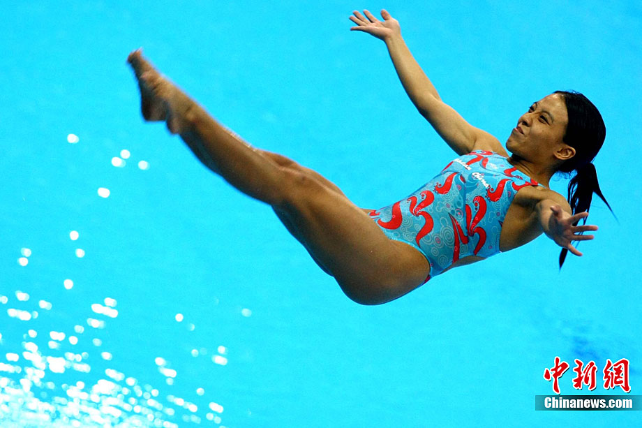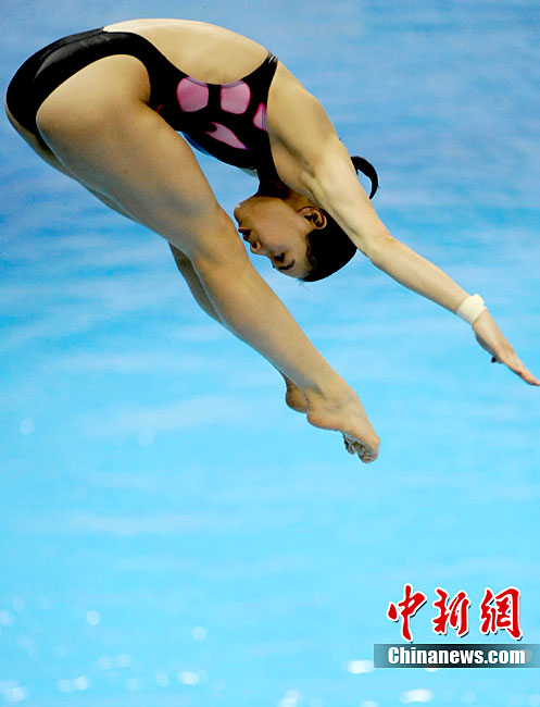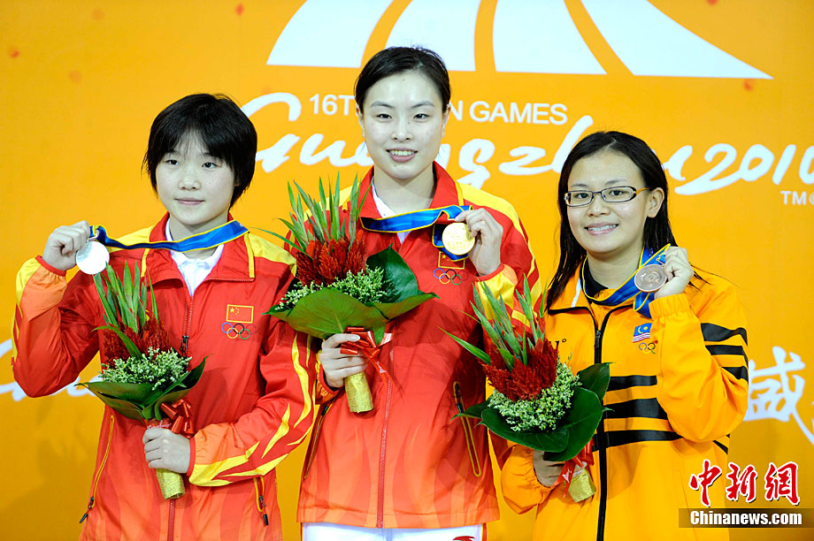 11月24日,广州亚运会跳水项目女子1米跳板决赛在奥体游泳馆举行,中国选手吴敏霞以326.15分夺得金牌。中新社记者 王东明 摄