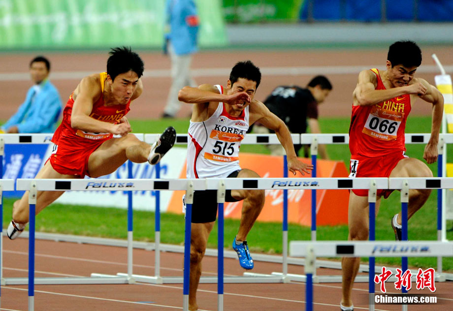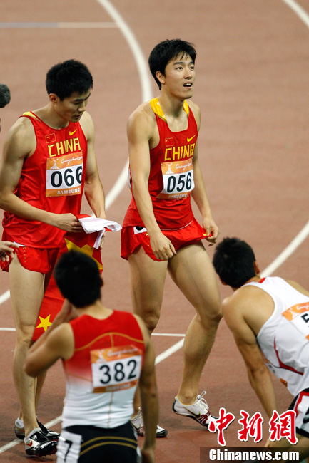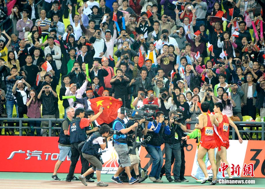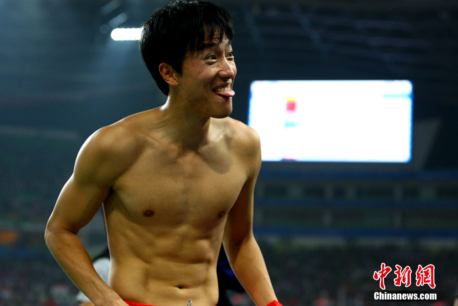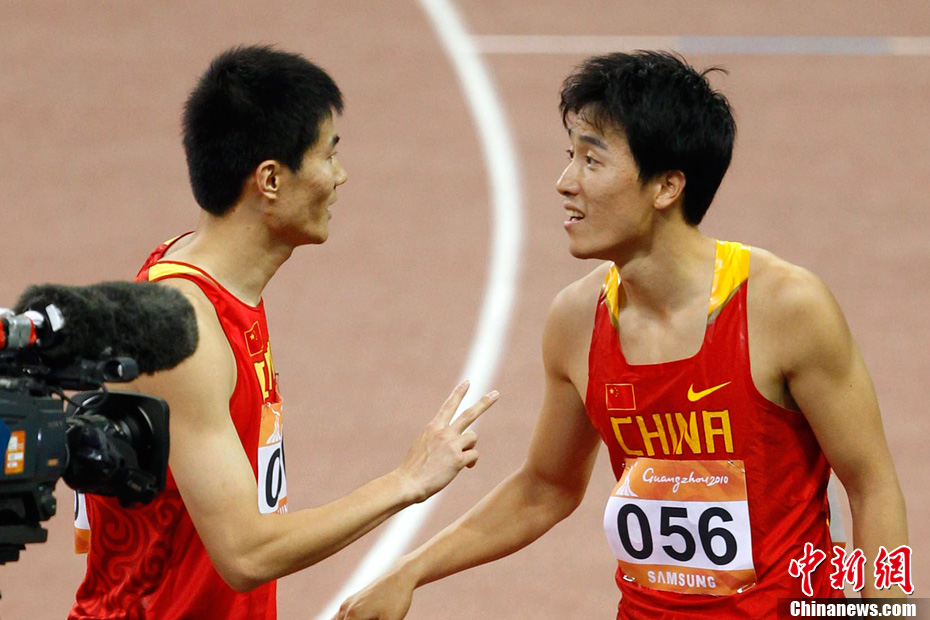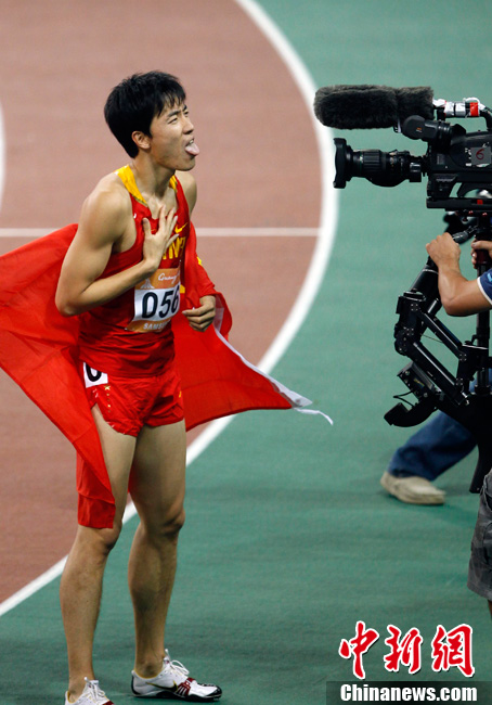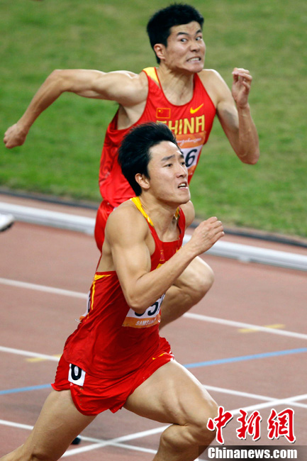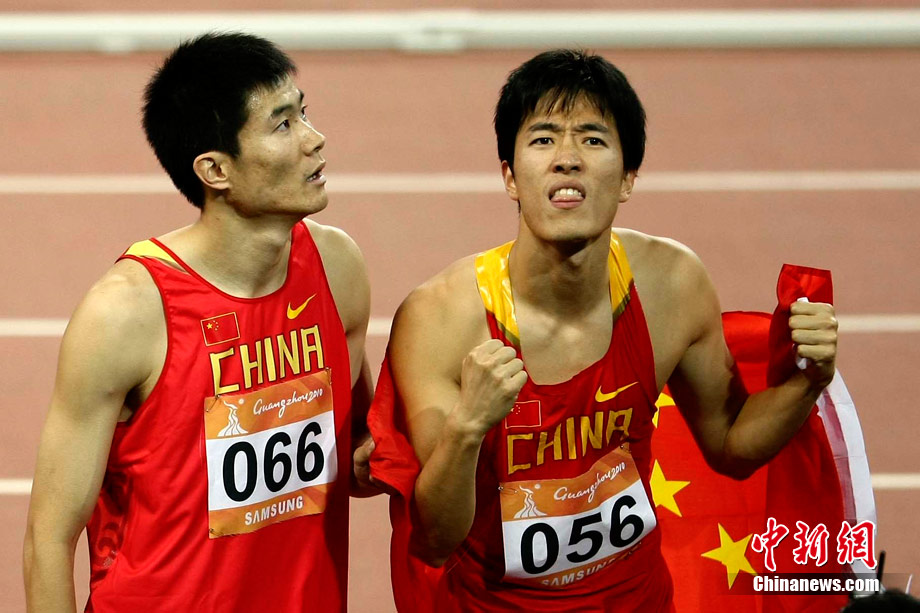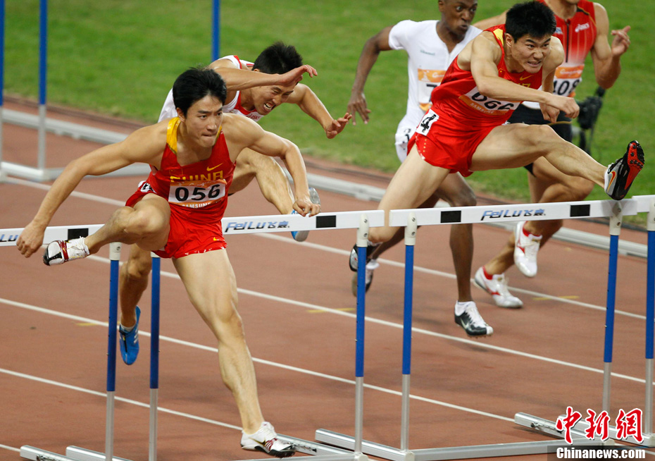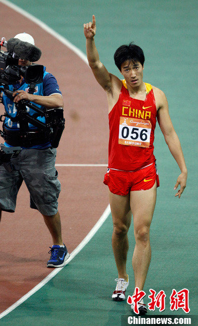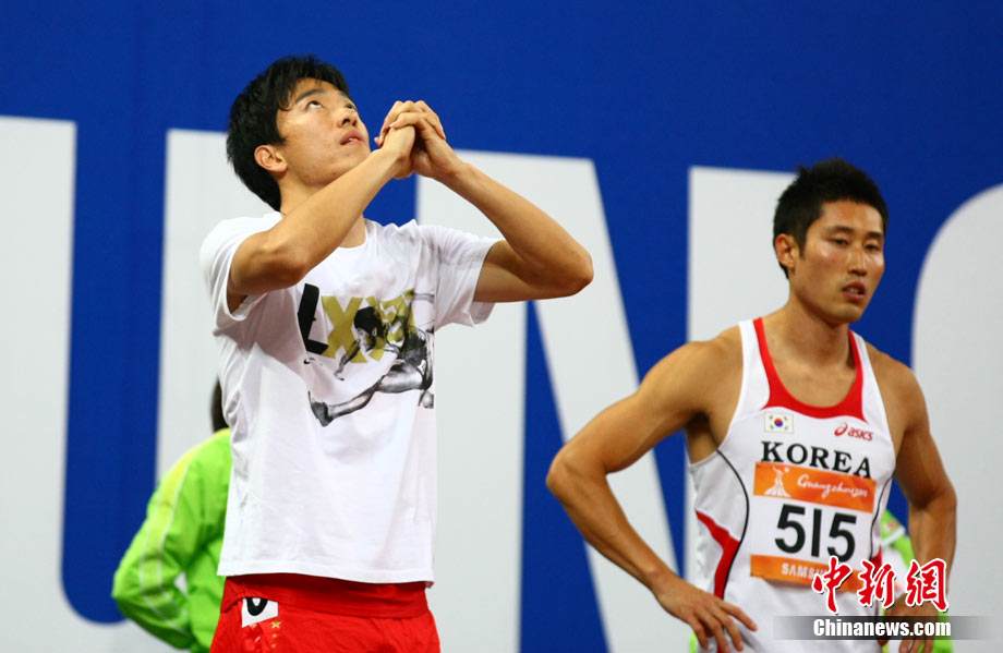 11月24日,广州亚运会男子110米栏决赛,刘翔以13秒09的成绩夺得金牌,这一成绩打破了亚运会纪录。刘翔以一场酣畅淋漓的胜利宣告了自己的回归。中新社记者 王东明 摄