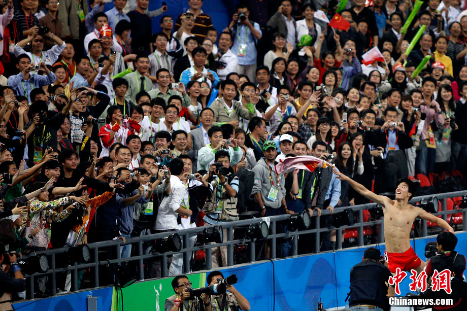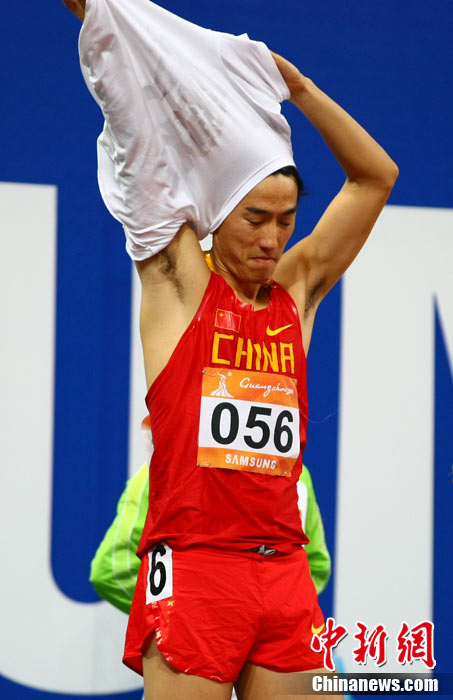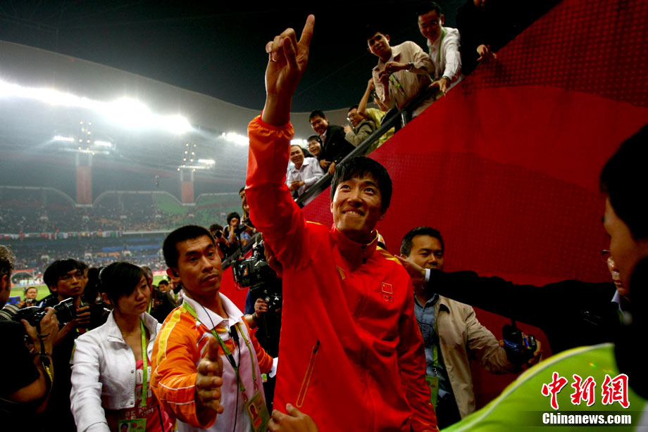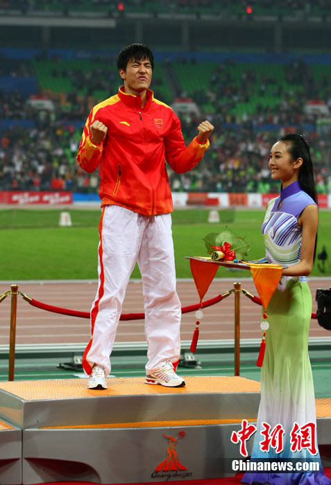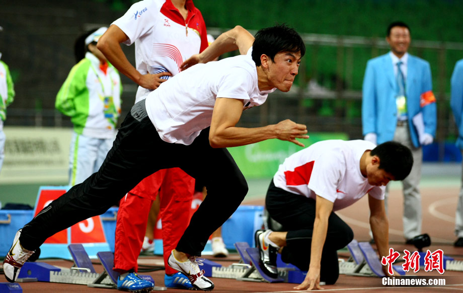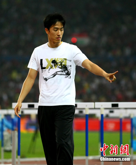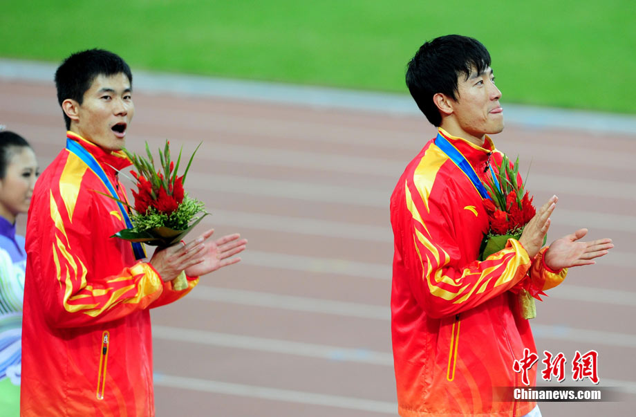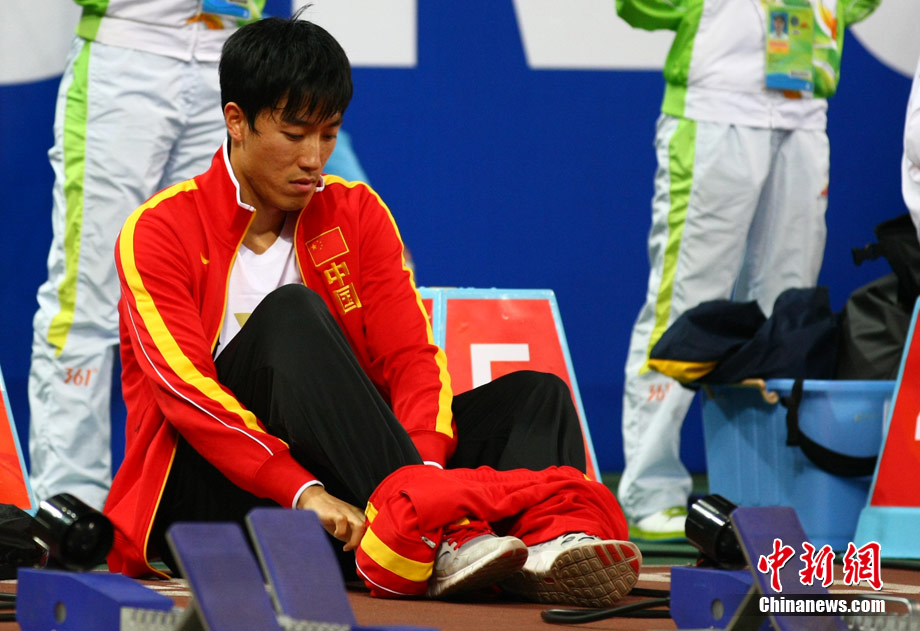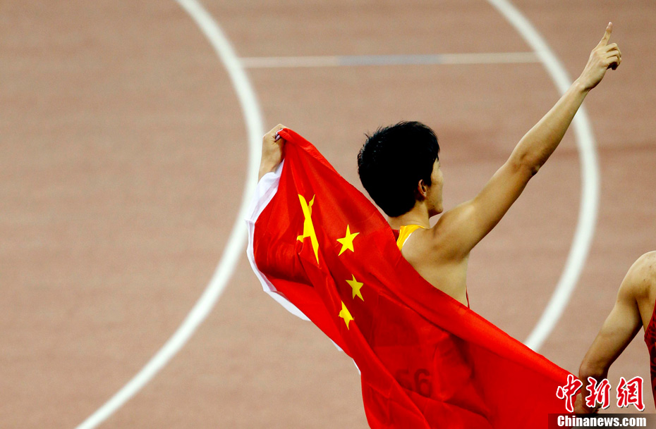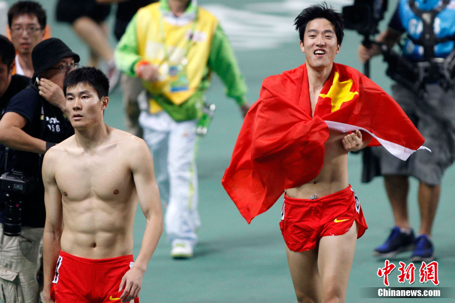 11月24日,广州亚运会男子110米栏决赛,刘翔以13秒09的成绩夺得金牌,这一成绩打破了亚运会纪录。刘翔以一场酣畅淋漓的胜利宣告了自己的回归。中新社记者 王东明 摄