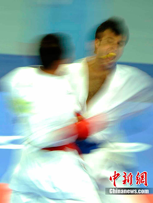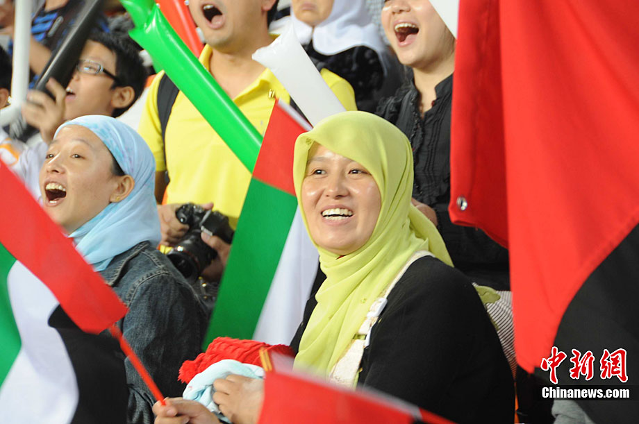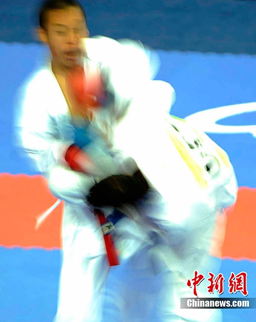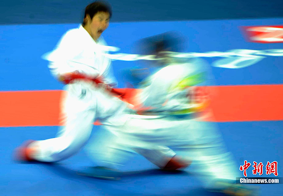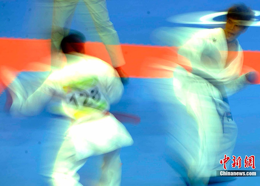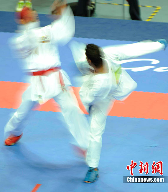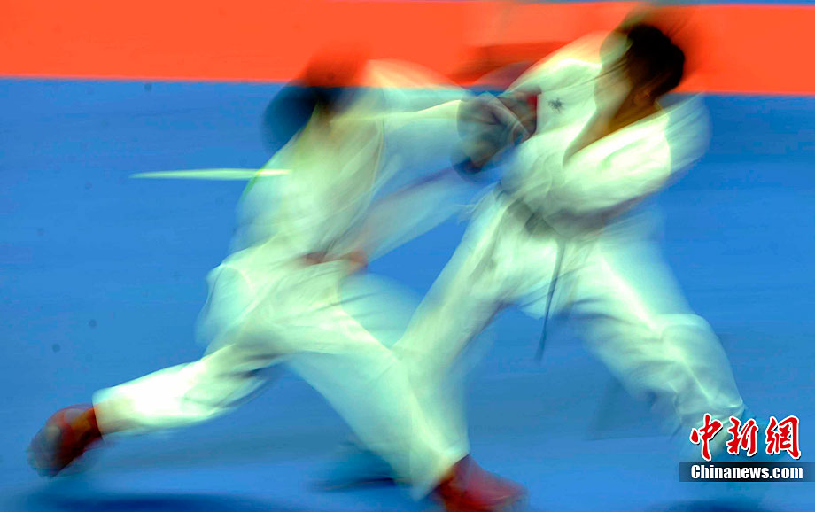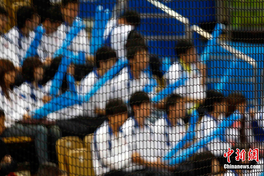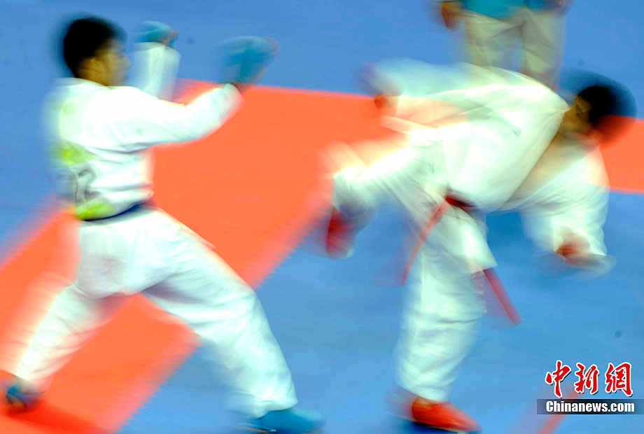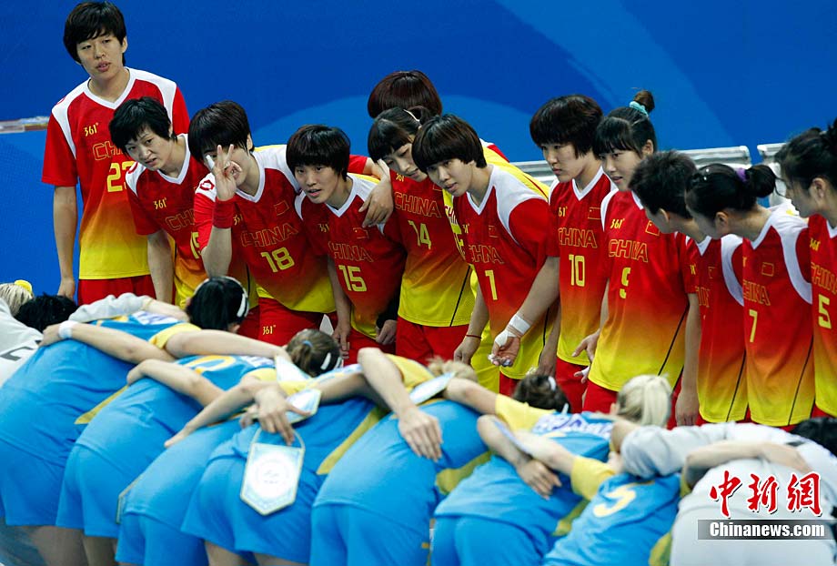 11月25日上午,广州亚运会艺术体操个人、团体决赛在亚运城体育馆开赛。图为中国选手在比赛中,场下的各国运动员聚精会神的观看对手表现。 中新社记者 金硕 摄