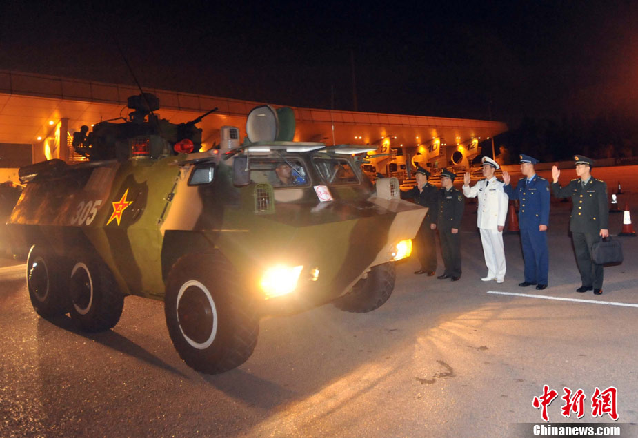 11月25日,中国人民解放军驻香港部队由25日零时开始进行陆海空三军建制单位轮换,这是驻港部队进驻香港后第13次轮换行动。图为轮换进港的陆军官兵分乘通讯车、装甲车及卡车经落马洲口岸进入香港。