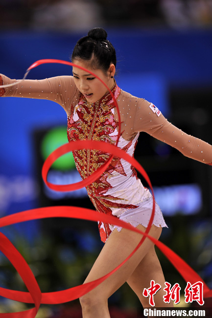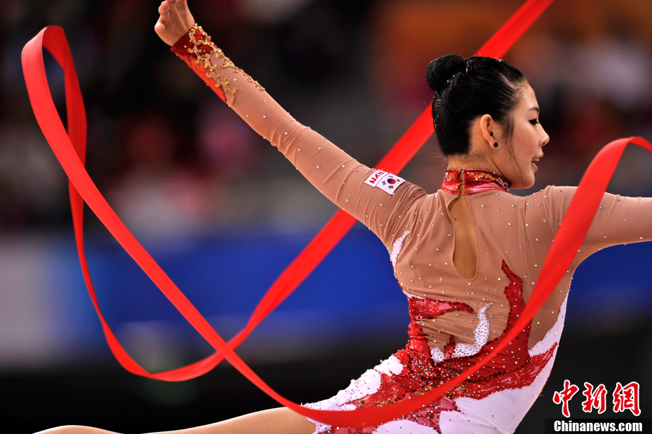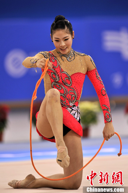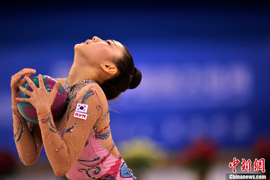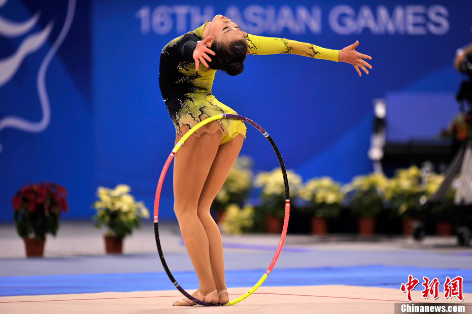 11月25日,亚运会上最“唯美”的项目艺术体操正式开赛,90后的小选手们纤细曼妙的身材、柔美而富有韵律的动作成为亚运赛场最美的风景线。中新网记者 金硕 摄