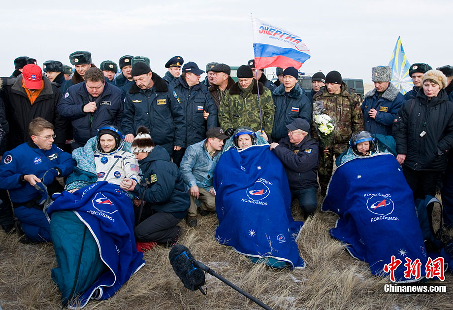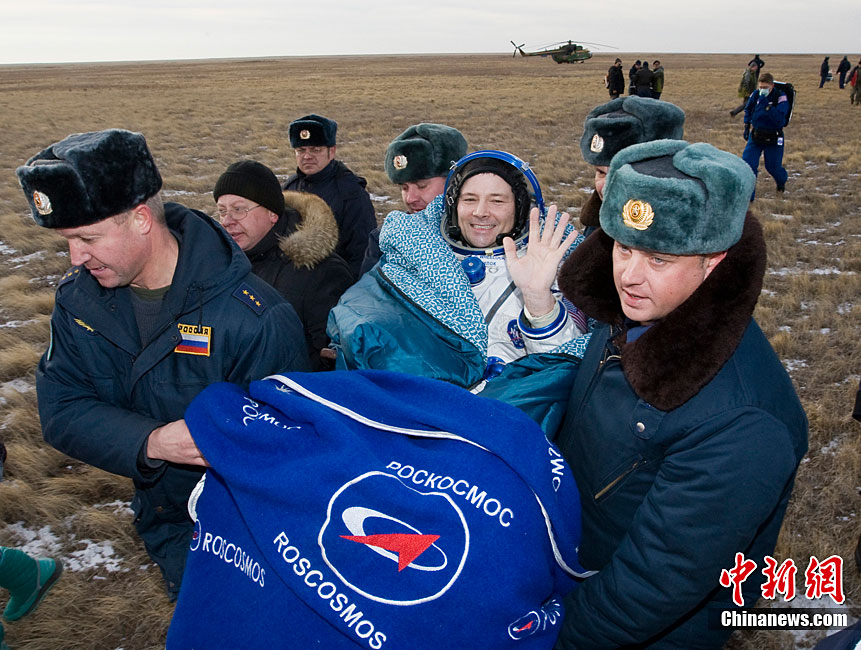 俄罗斯地面飞行控制中心当地时间11月26日宣布,国际空间站的3名宇航员已于当日清晨乘俄“联盟TMA-19”载人飞船安全返回地球。在国际空间站内工作了162天的俄罗斯宇航员尤尔齐欣、美国宇航员维洛克和沃克尔乘坐“联盟TMA-19”载人飞船,平安降落在哈萨克斯坦阿尔卡雷克市以北的草原上,3名宇航员目前状态良好。