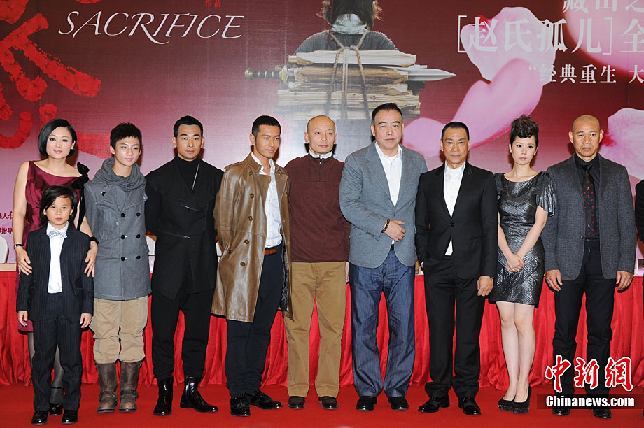 11月26日,陈凯歌最新力作《赵氏孤儿》在北京举行了全球首映礼。陈凯歌、葛优、王学圻、黄晓明、张丰毅、赵文卓、陈红、海清等众主创全阵容豪华亮相。影片将于12月4日公映。随着《赵氏孤儿》打响贺岁档第一枪,今年贺岁片大战的序幕即将拉开。中新社记者 李学仕 摄