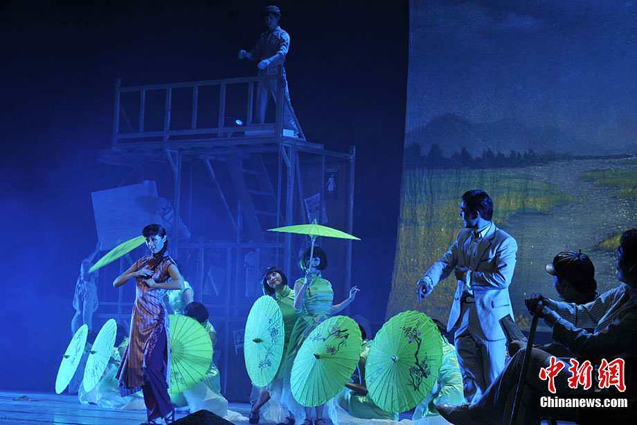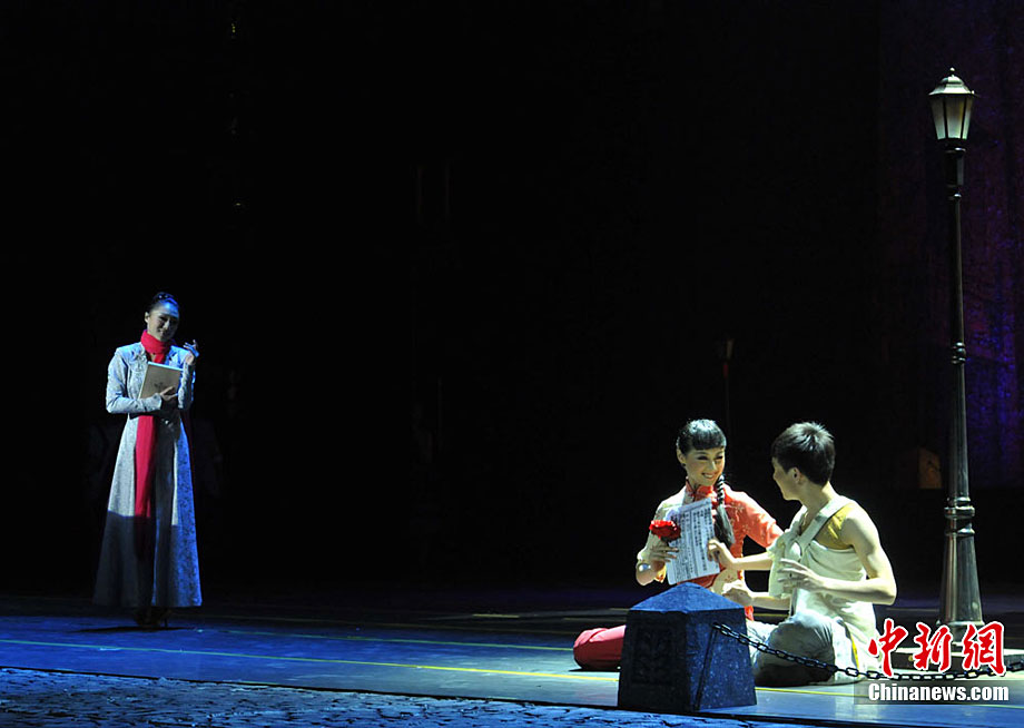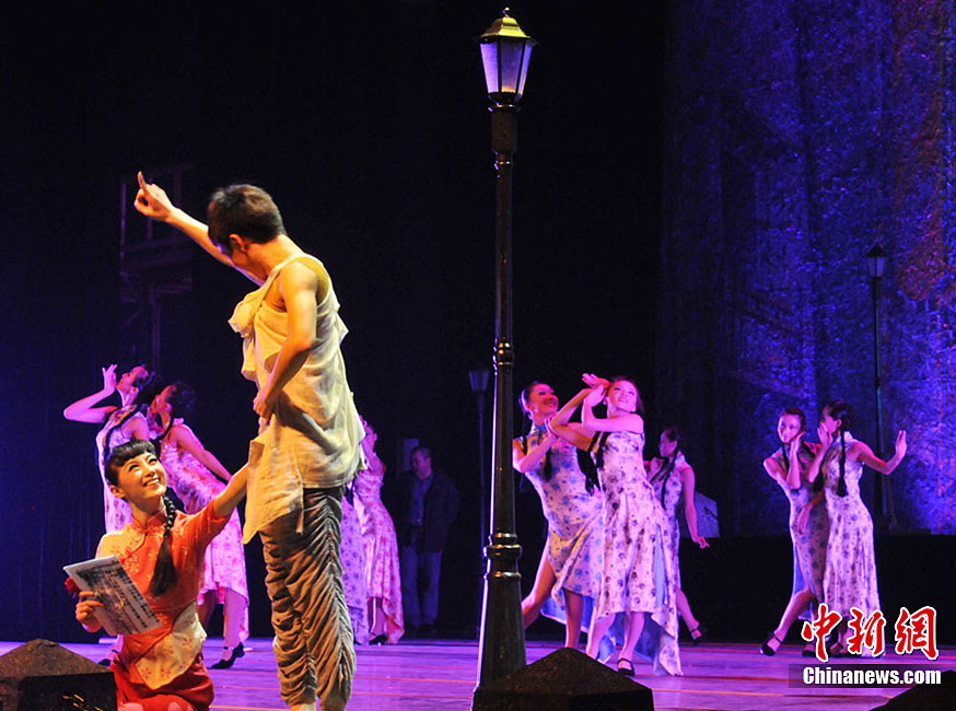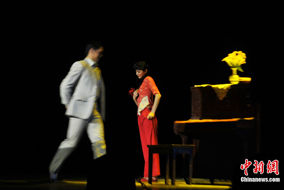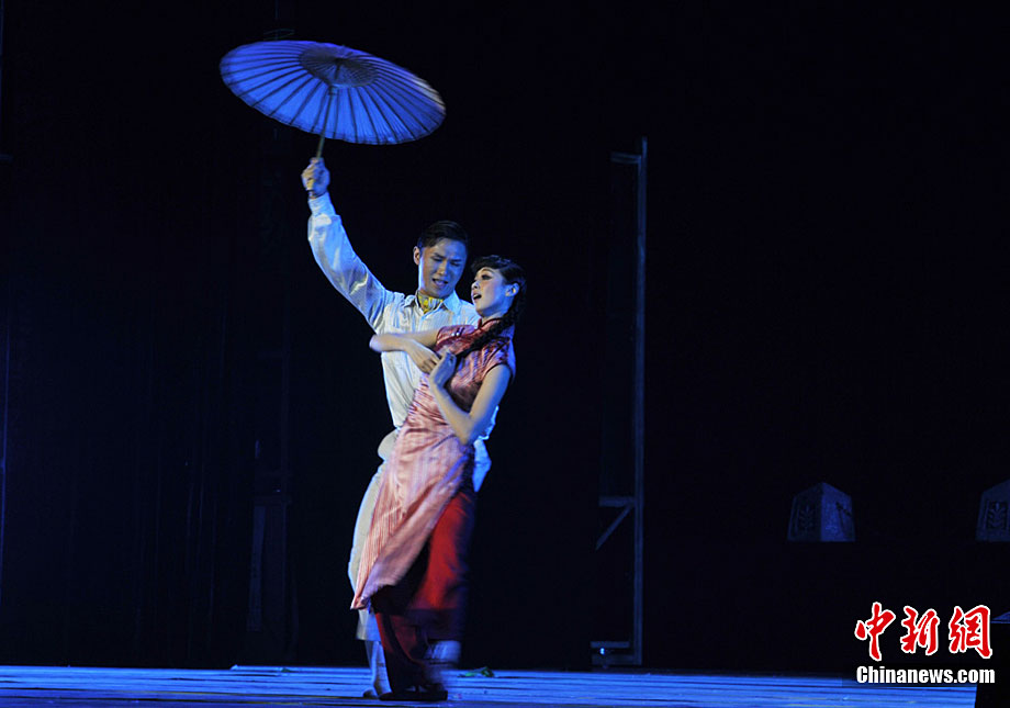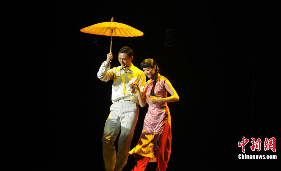 11月26日晚,由广州亚运会开幕式导演陈维亚执导、讲述一代名伶周璇的原创海派舞剧《周璇》在兰州金城大剧院精彩上演。周璇是中国早期电影著名女演员、民国时期著名歌唱家、一代歌后,她的名字可以说是国语流行曲史上一个金字招牌,号称“金嗓子”。杨艳敏 摄