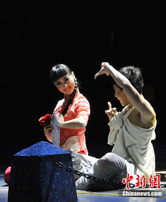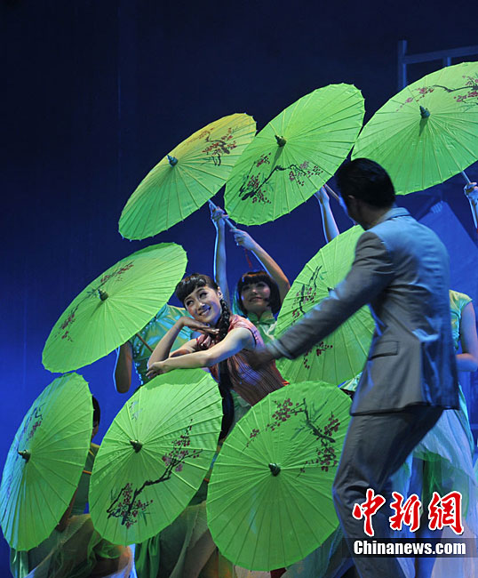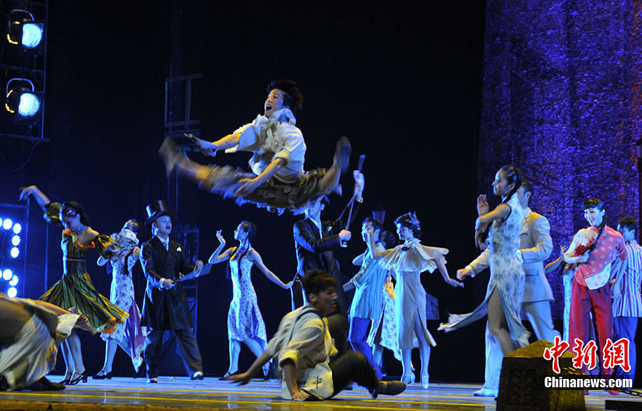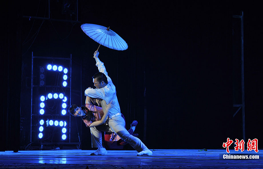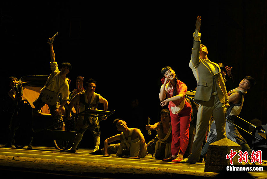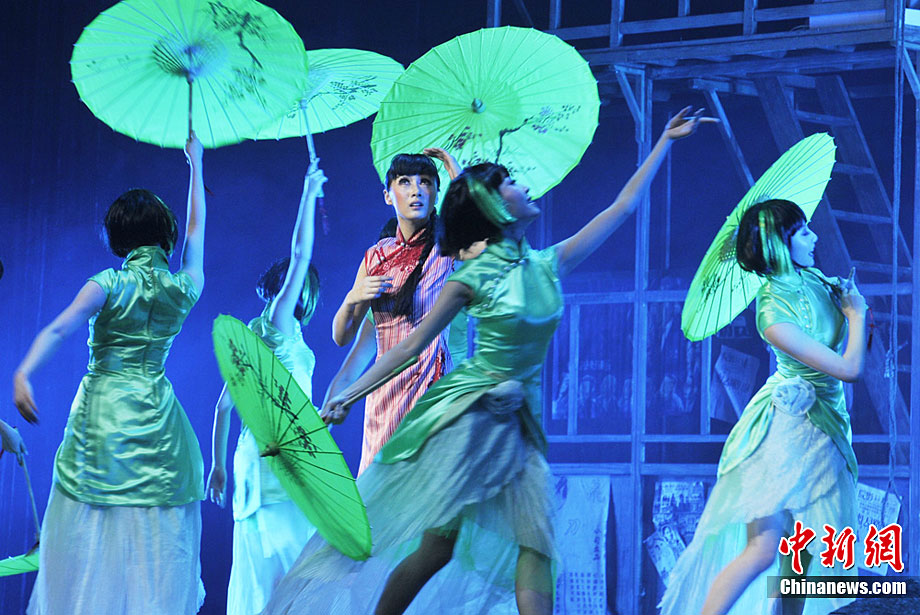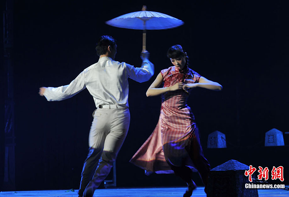 11月26日晚,由广州亚运会开幕式导演陈维亚执导、讲述一代名伶周璇的原创海派舞剧《周璇》在兰州金城大剧院精彩上演。周璇是中国早期电影著名女演员、民国时期著名歌唱家、一代歌后,她的名字可以说是国语流行曲史上一个金字招牌,号称“金嗓子”。杨艳敏 摄