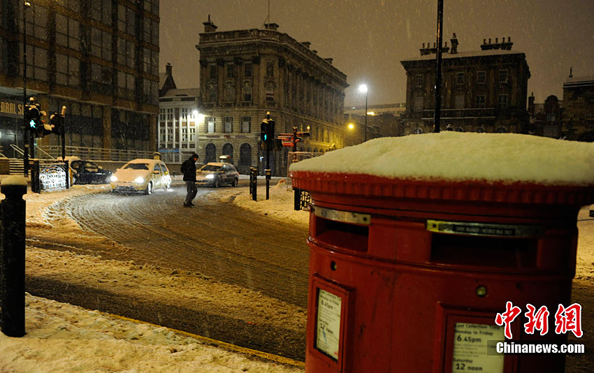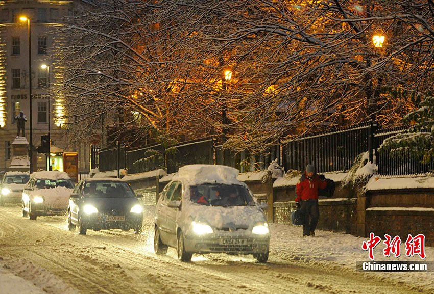 欧洲广大地区受到严寒天气侵袭,其中英国提早降下今冬第一场雪,是17年来最大的初雪,部分地区更刮起暴风雪,最低气温达零下17摄氏度,居民生活和交通大受影响。法国、比利时、荷兰、丹麦、德国、波兰以至白俄罗斯均出现暴风雪,预计西班牙北部也会下雪。图为11月29日,英格兰北部纽卡斯尔,汽车行驶在大雪覆盖的道路上。
