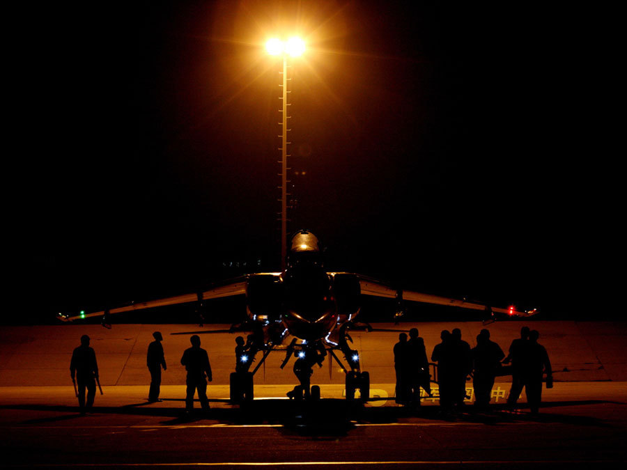 随着震耳欲聋的轰鸣声,一架架怒吼的战鹰撕开沉寂的夜空,直刺苍穹……