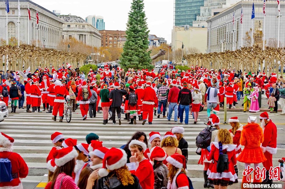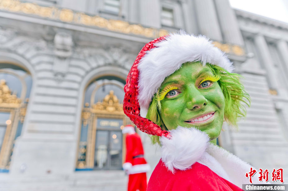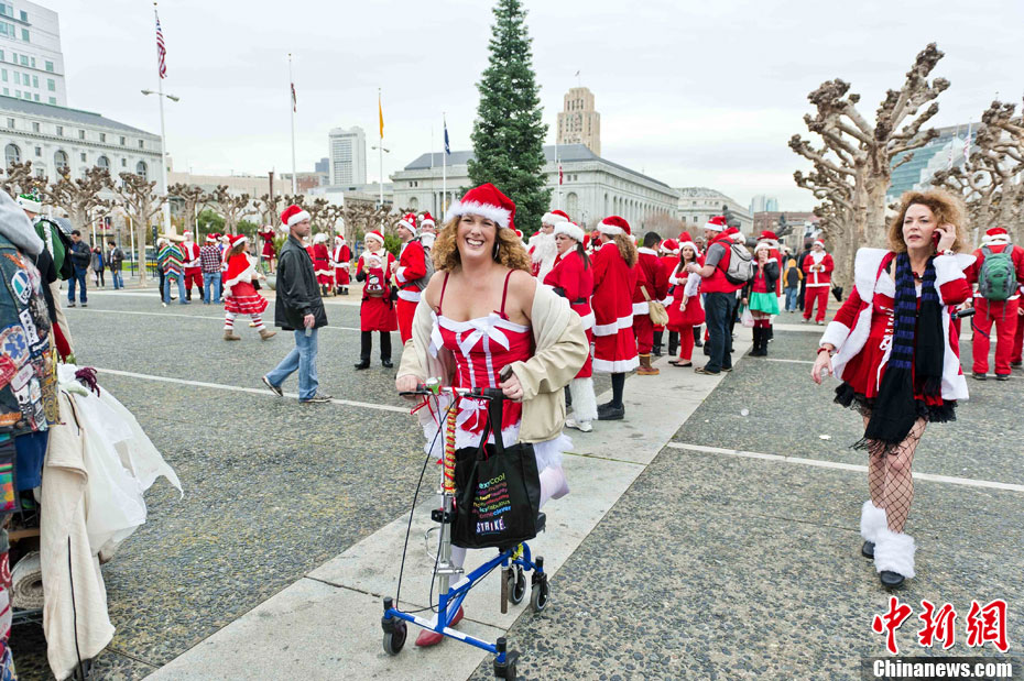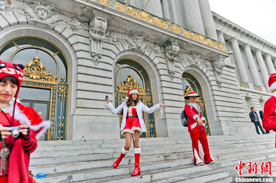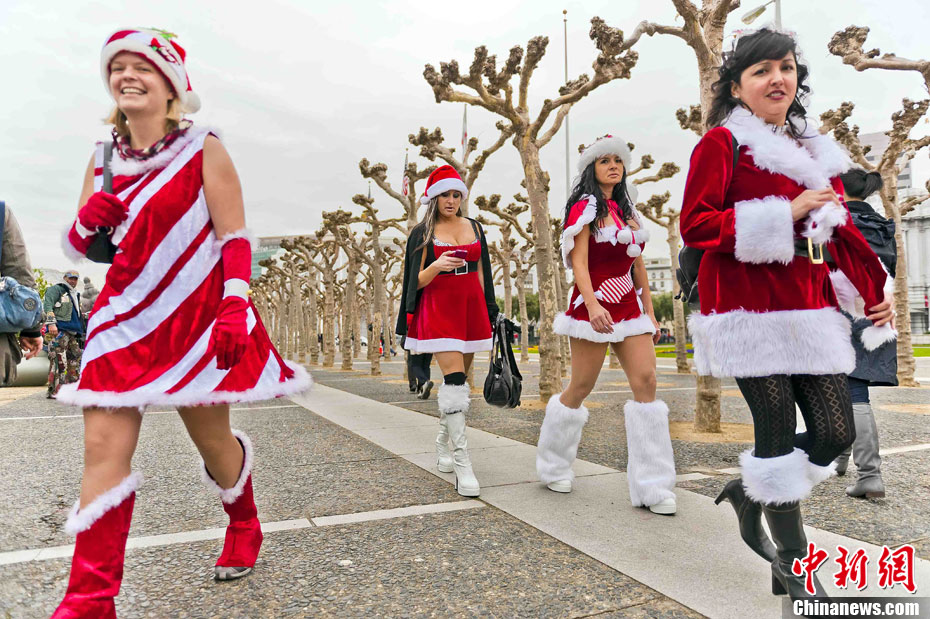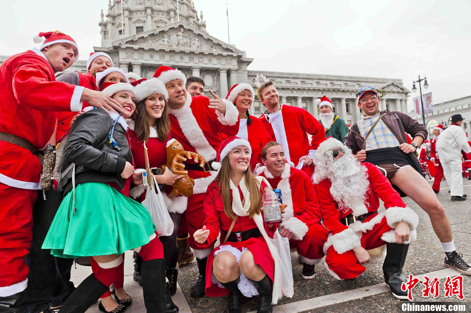 俊男美女装扮圣诞老人