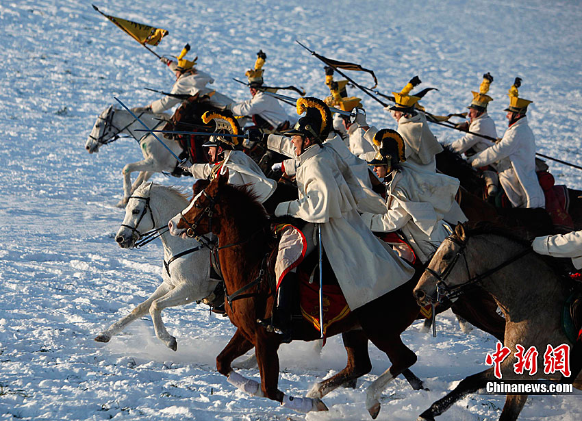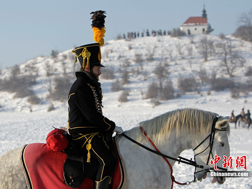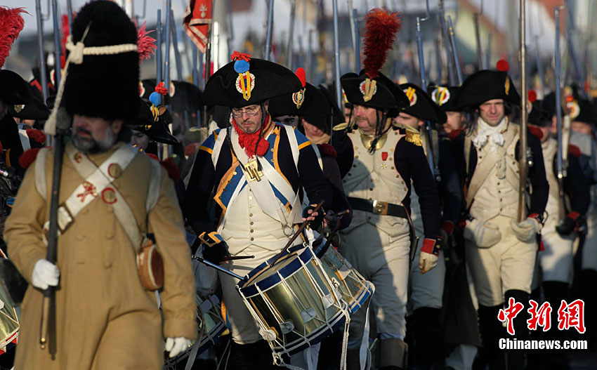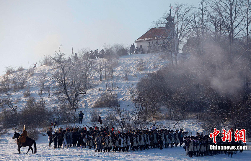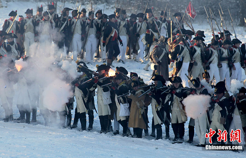 当地时间12月4日,捷克斯拉夫卡夫市,为纪念“三皇之战'205周年,历史军事发烧友俱乐部的成员还原了当时的战争场景。位于欧洲大陆中部的奥斯特利茨1805年12月2日爆发一场决定性战役,对阵双方分别是代表欧洲专制传统的奥地利神圣罗马帝国和沙皇俄国联军,以及乘大革命风潮而起的法兰西第一帝国军队。这场战役又称“三皇之战”,因为交战双方指挥官分别是神圣罗马帝国皇帝弗朗兹二世、沙皇亚历山大一世和法兰西第一帝国皇帝拿破仑一世。