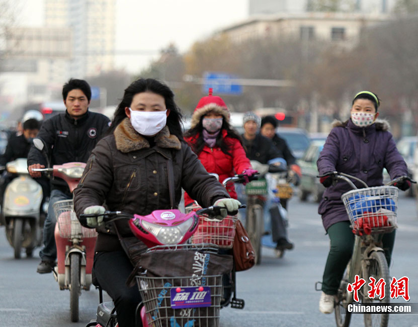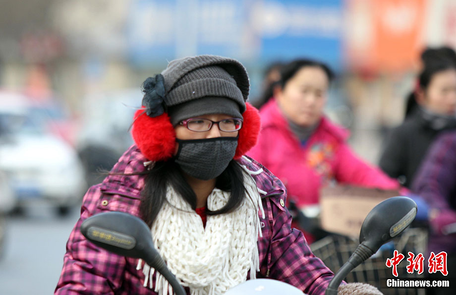 12月6日,河南郑州,民众全副“武装”抵御寒潮袭击。5日傍晚,中央气象台发布的天气预报显示,从当日起,受强冷空气影响,未来三天,中国中东部大部地区都将先后出现6~12℃降温,其中,吉林东部、辽宁中东部、山东、江苏等地的部分地区降温幅度可达14~16℃。中新社记者 王中举 摄
