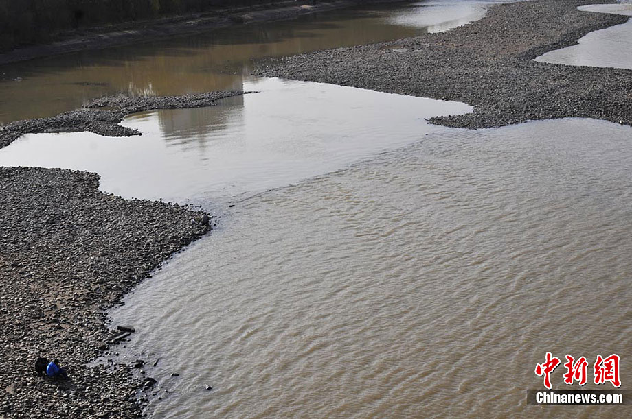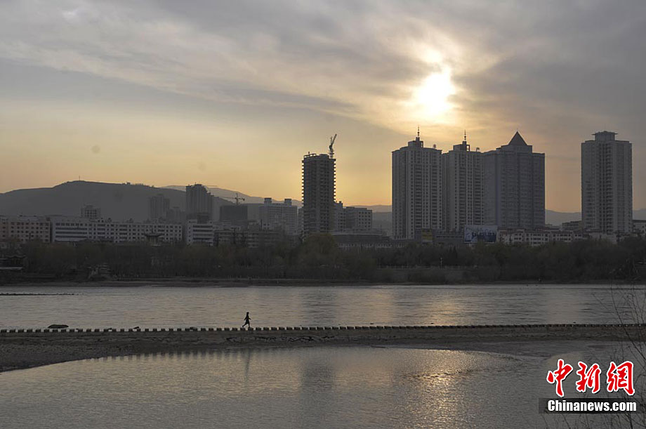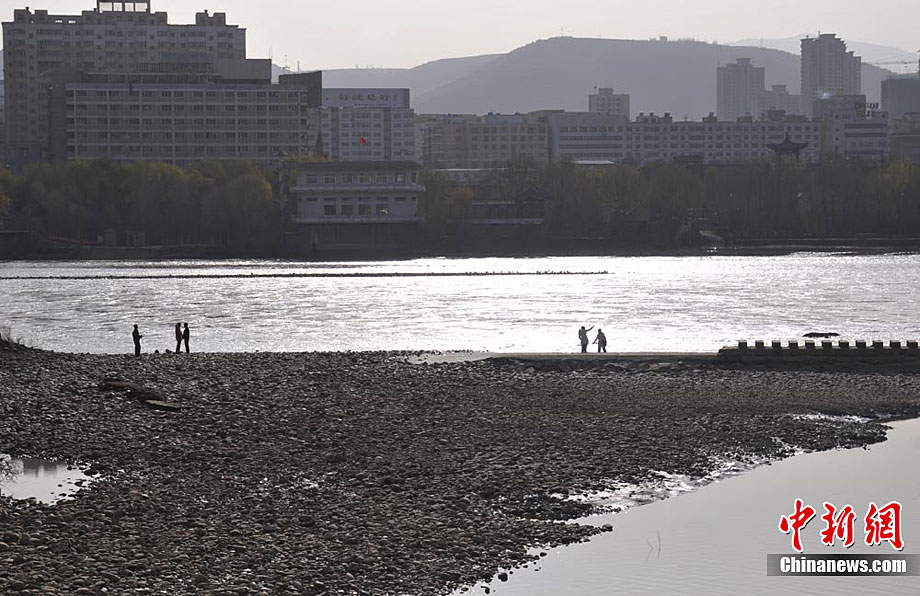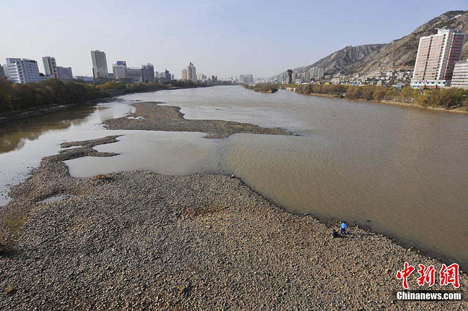 黄河兰州段大面积河床裸露