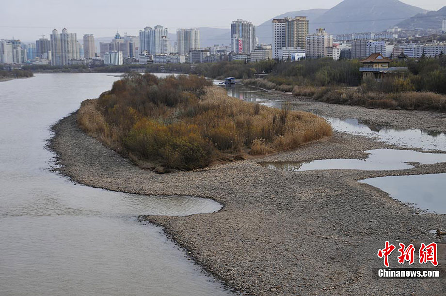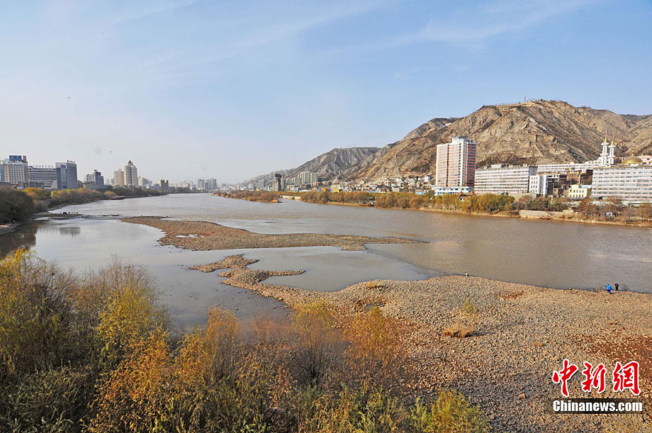 12月初,黄河兰州段出现了大片的河床裸露,今年的枯水期要比往年提前近半月。杨艳敏 摄