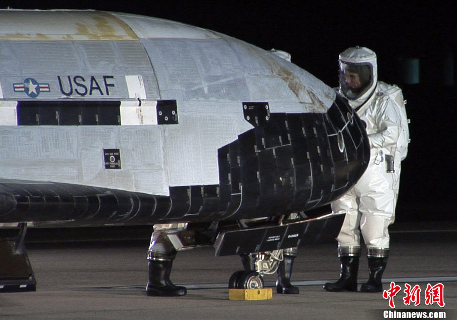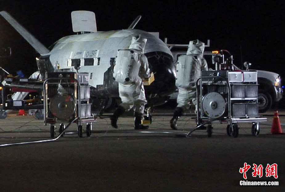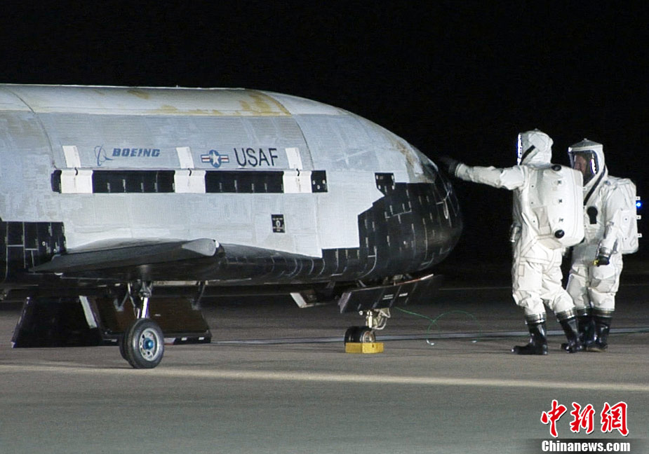 12月3日,美军一架X-37B可重复飞行无人空天飞机在结束220天的旅程之后成功返回地球。空天飞机项目是美军秘密太空探测项目之一。这架空天飞机是2010年4月发射升空的。图为在美国范登堡空军基地着陆的X-37B无人空天飞机。