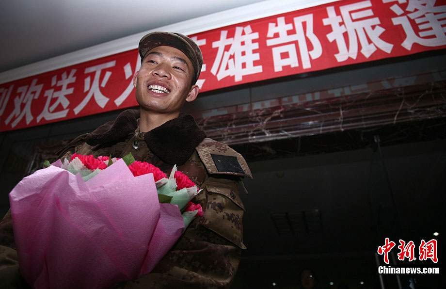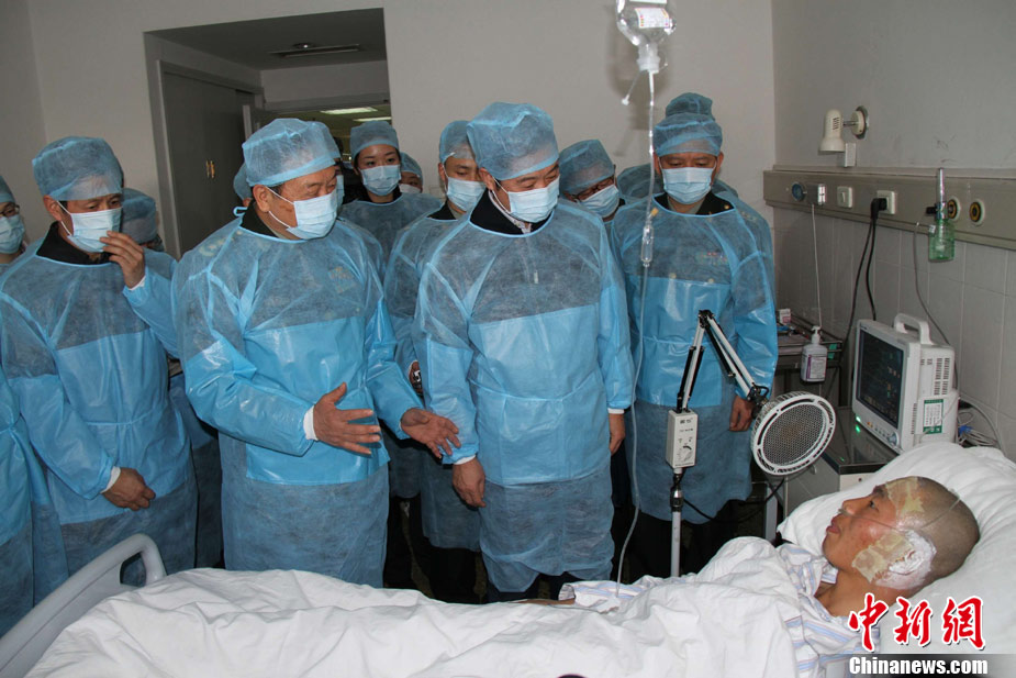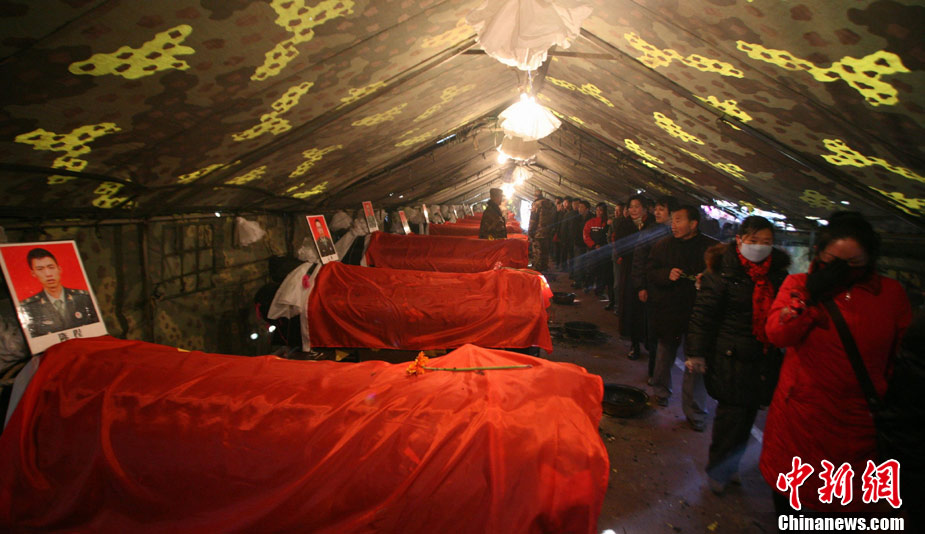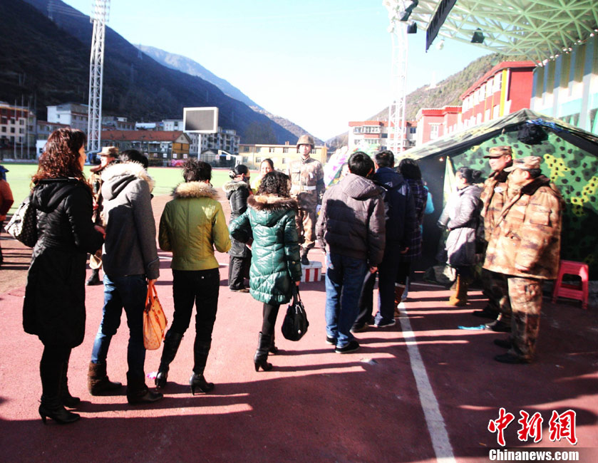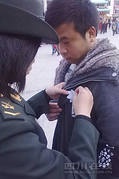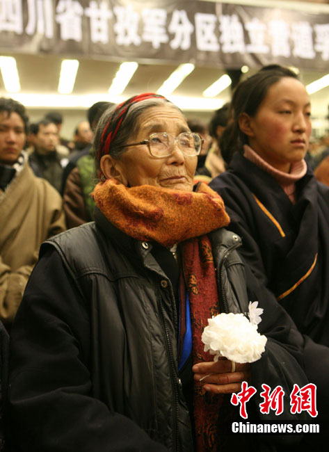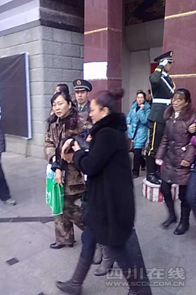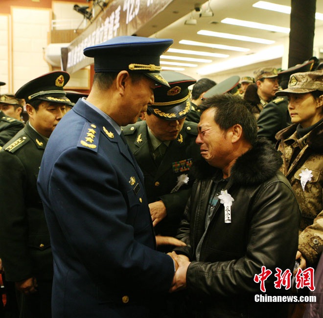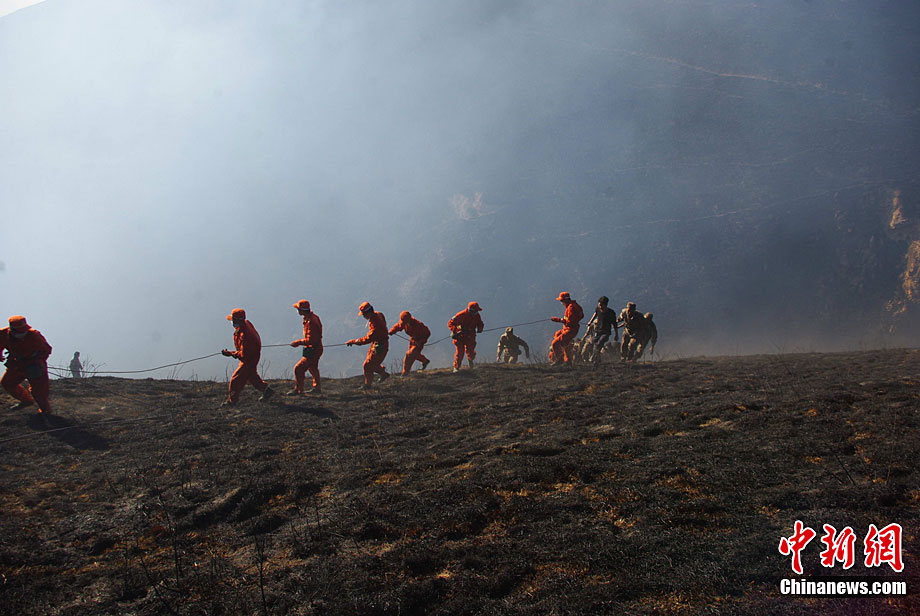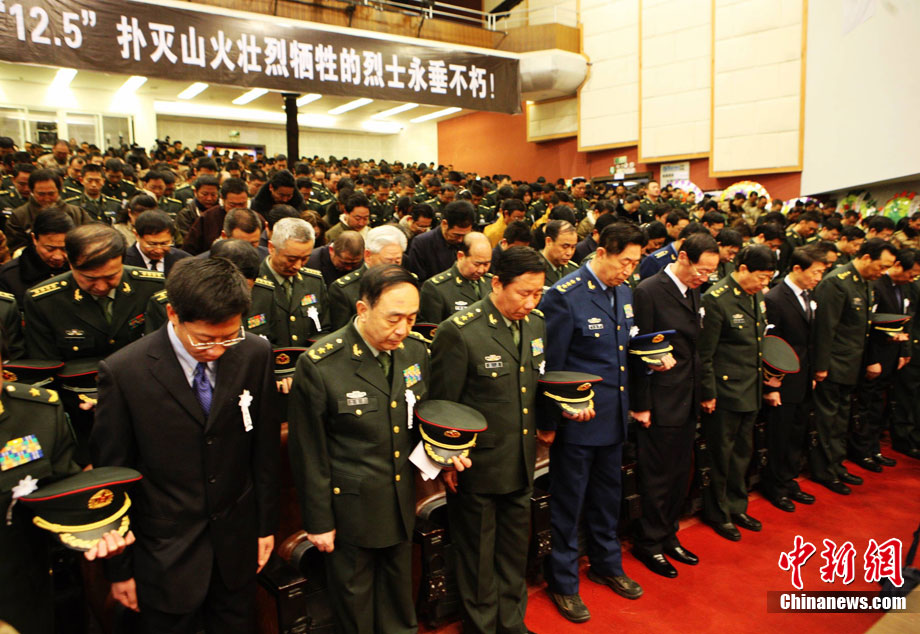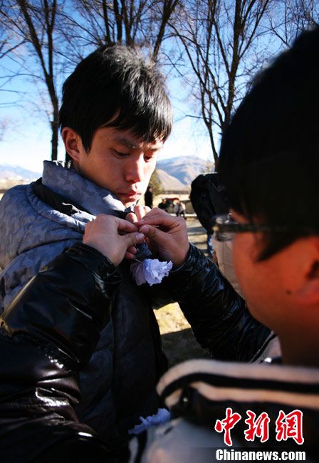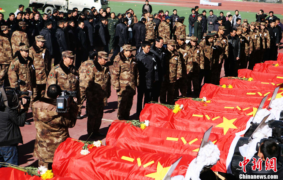 12月6日下午17时,在四川道孚救火中牺牲的15位英雄灵柩起运送往康定火化,上万民众胸带白花来到英雄路过的川藏线国道317线道孚城区段送别英雄。图为道孚县民众痛别英雄。 中新社发 刘忠俊 摄