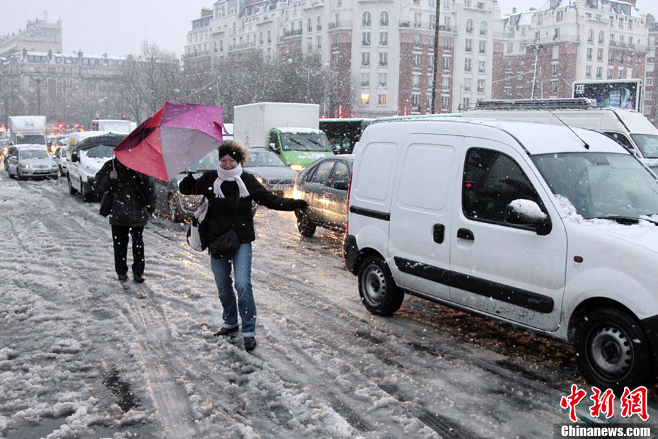 当地时间12月8日,法国巴黎降下二十多年来最大一场雪,导致埃菲尔铁塔关闭,主要机场短时关闭,上百航班延误。巴黎地区所有的高速公路都无法通行,350个公交线路只有极少数在继续运行。