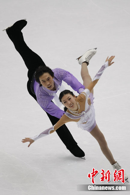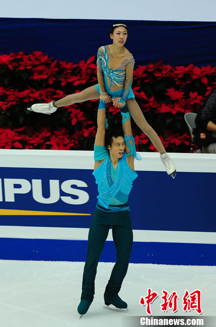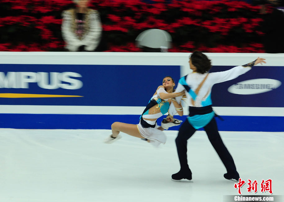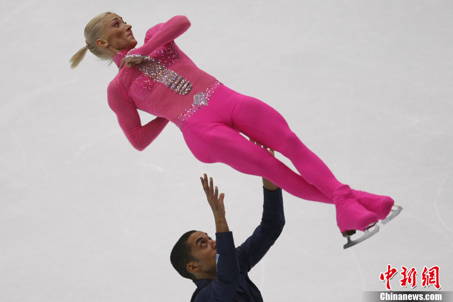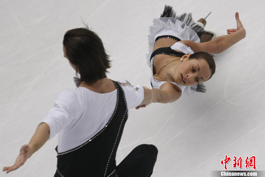 12月10日下午,世界花样滑冰大奖赛总决赛继续在北京首都体育馆举行。在双人滑比赛中,一对俄罗斯选手演绎出动感与力量之美。中新社记者 侯宇 摄