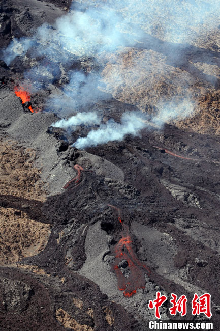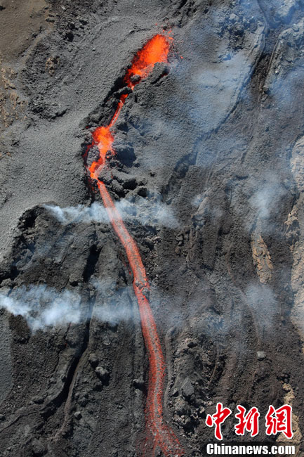 法国弗尔乃斯火山喷发熔岩流