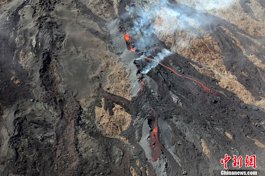 12月10日,法国留尼旺岛上的弗尔乃斯火山喷发熔岩流,位于印度洋西南部的弗尔乃斯火山是世界上最活跃的活火山之一。