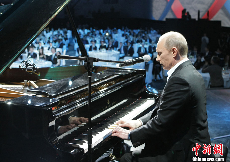 12月10日,俄罗斯总理普京在圣彼得堡出席为患眼疾和癌症的儿童举行的慈善音乐会,普京在音乐会上亲自弹奏钢琴并献唱。