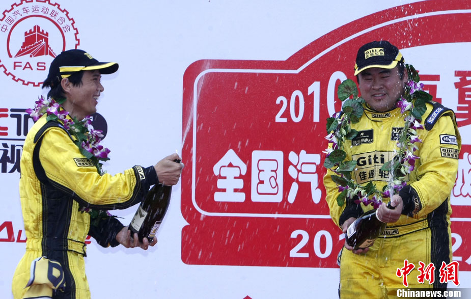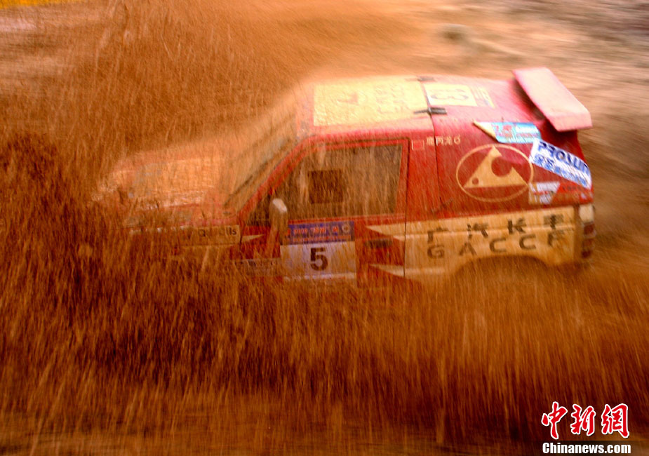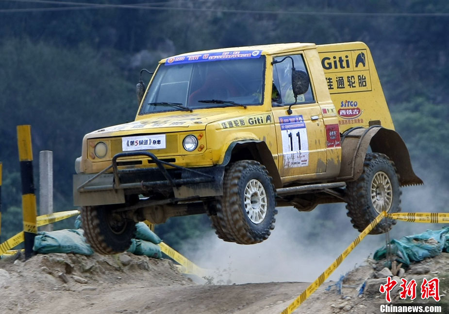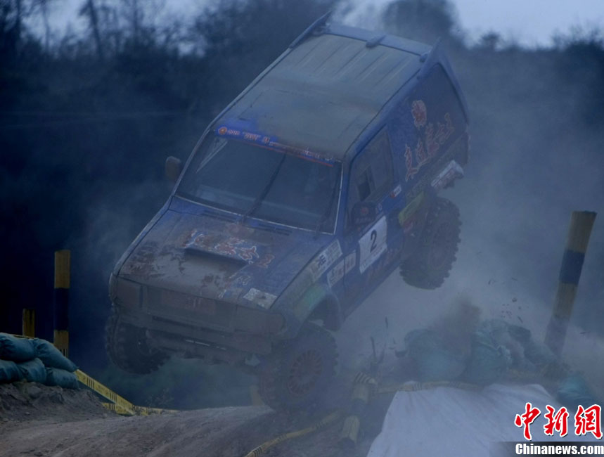 2010年全国汽车场地越野锦标赛(COC) “海翼杯”总决赛12月11日在厦门集美落幕。来自全国的越野精英汇聚一堂展开最后的角逐,陆风车队荣获分量最重的年度柴油组厂商队杯。图为何伟喷在比赛中。