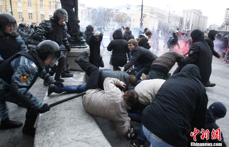 12月11日,俄罗斯首都莫斯科发生大规模球迷骚乱。 骚乱直接原因是此前于12月6日发生在市内的一起斯巴达克俱乐部球迷与高加索人之间的群殴事件。事件导致一名斯巴达克俱乐部球迷死亡,11日中午,一些球迷聚集到莫斯科市中心马涅什广场,声称为死亡球迷举行悼念仪式,从而最终引发了目前这场有多达5万名球迷参与的骚乱。