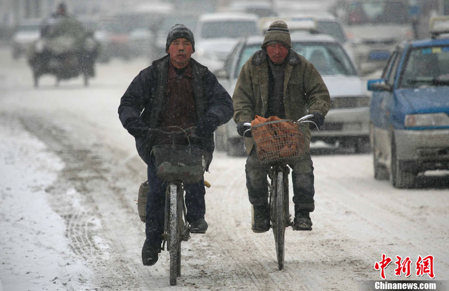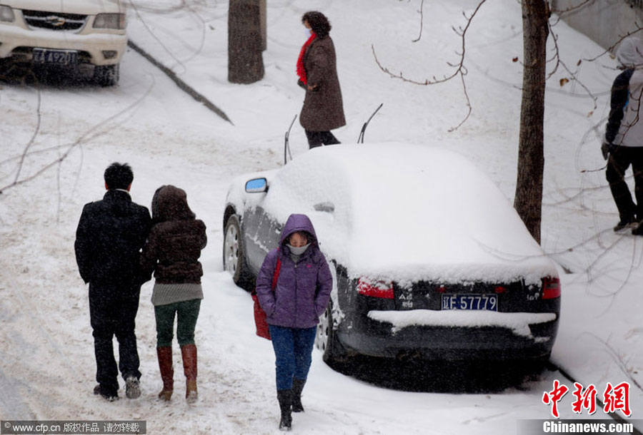 12月12日,沈阳市再次降雪降温,连续的强降雪和低温大风天气给市民出行和交通运输造成影响。 中新社发 黄金昆 摄