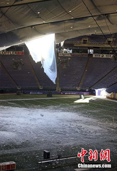 美国中西部遭暴风雪袭击 体育场被雪压塌