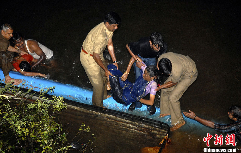 当地官员称,这辆巴士上的乘客当时正在去参加婚礼的路上。司机在迈索尔市郊的一座桥上失去了对车辆的控制,坠入水库。