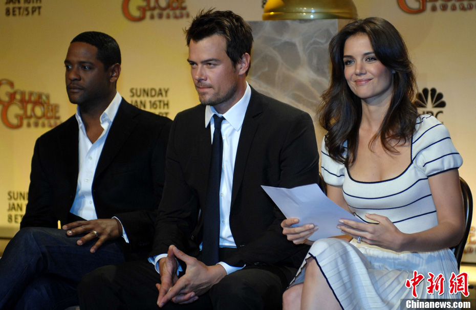 当地时间12月14日凌晨,第68届美国金球奖提名名单揭晓。《国王的演说》、《社群网战》和《斗士》领跑电影类奖项提名。图为好莱坞明星、汤姆·克鲁斯的妻子凯蒂·霍尔姆斯宣读提名名单。中新社发 张炜 摄