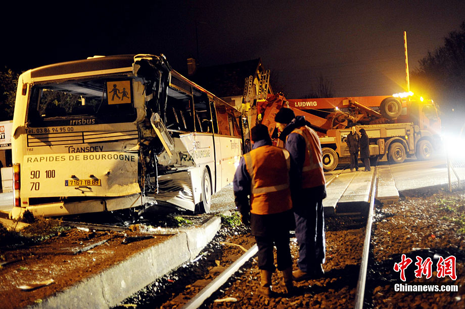 当地时间12月14日傍晚,法国中部约讷省一辆载有30余名中学生的校车与火车发生相撞事故,校车内17名中学生受伤。事发在一处没有栏杆的平交道口。据当地警方初步调查结果显示,事发前,校车内曾发生激烈争吵,校车司机可能因而分神,没留意驶来的列车。目前,校车司机已被警方拘留。
