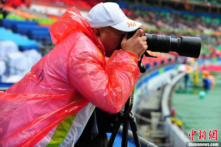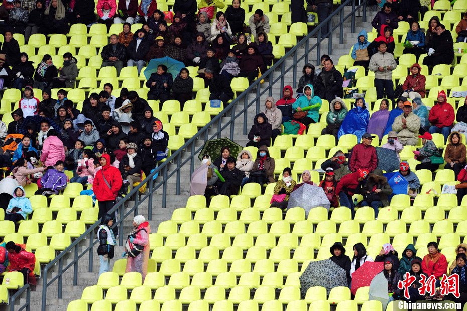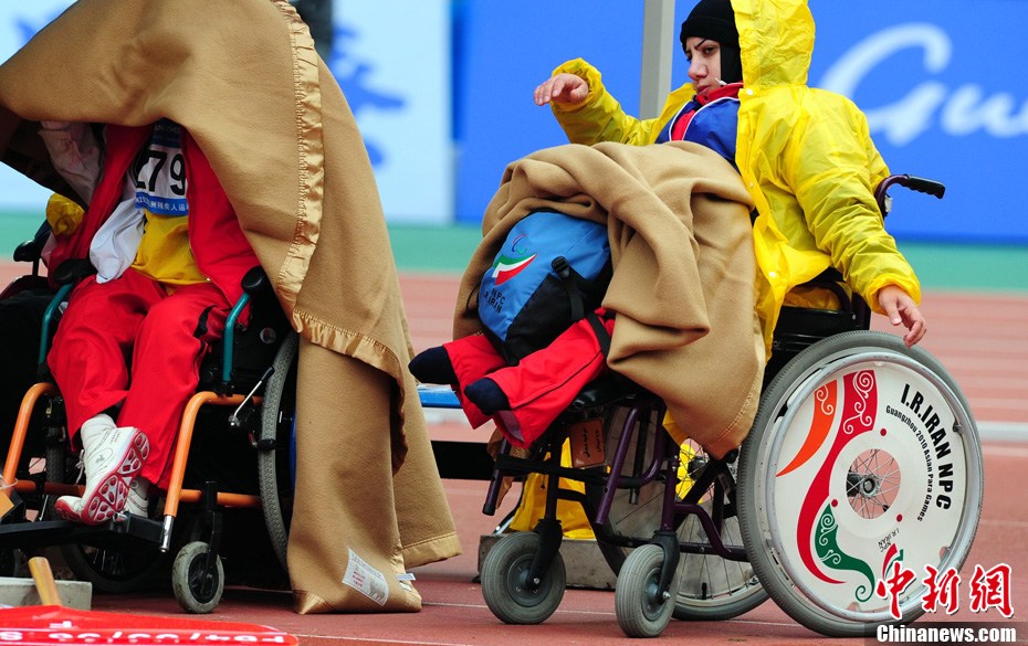 受强冷空气南下影响,12月15日广州最低气温4°,并伴有小到中雨,给亚残运会比赛带来不利影响,轮椅网球等个别室外比赛项目一度中断,但广州的观众和媒体记者热情不减。 中新社记者 陈文 摄