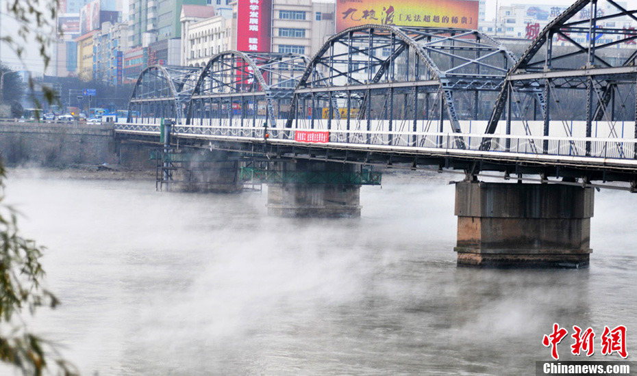 12月16日晨,黄河兰州段出现河雾景观。当日7时,兰州市最低气温降至零下15℃。 杨艳敏 摄