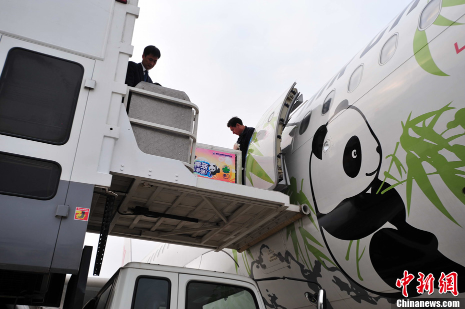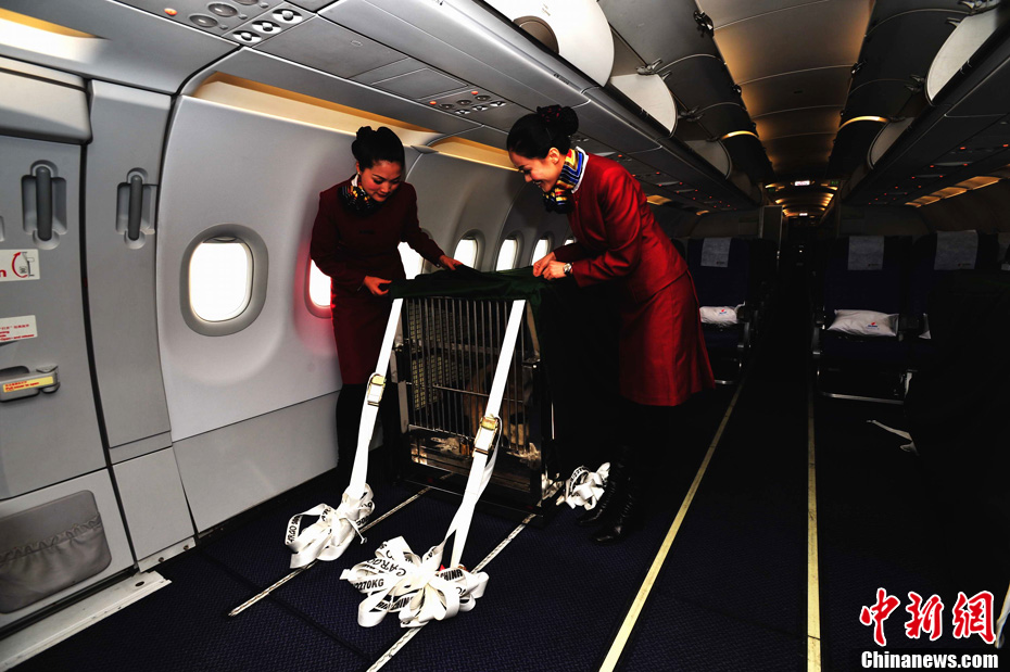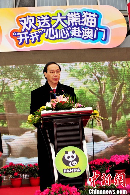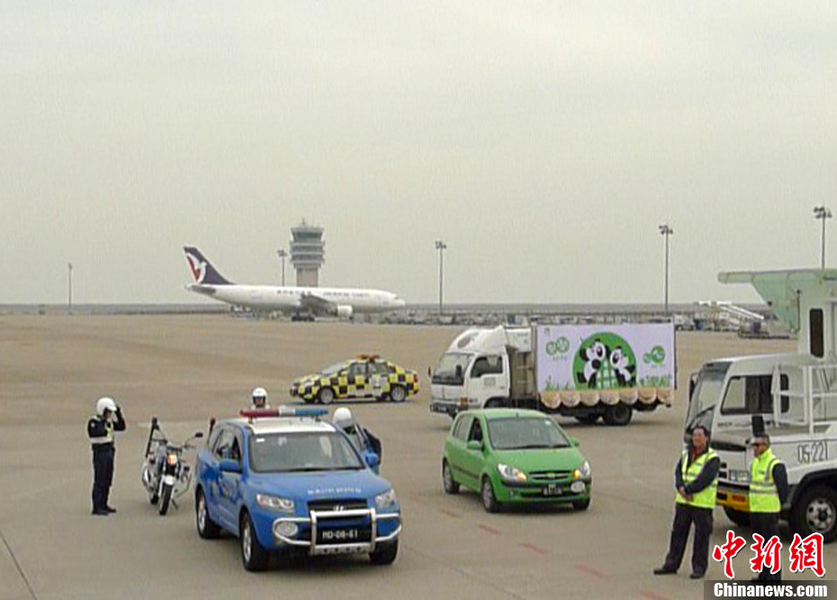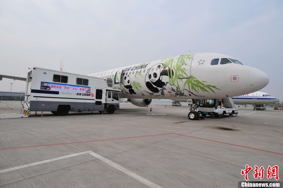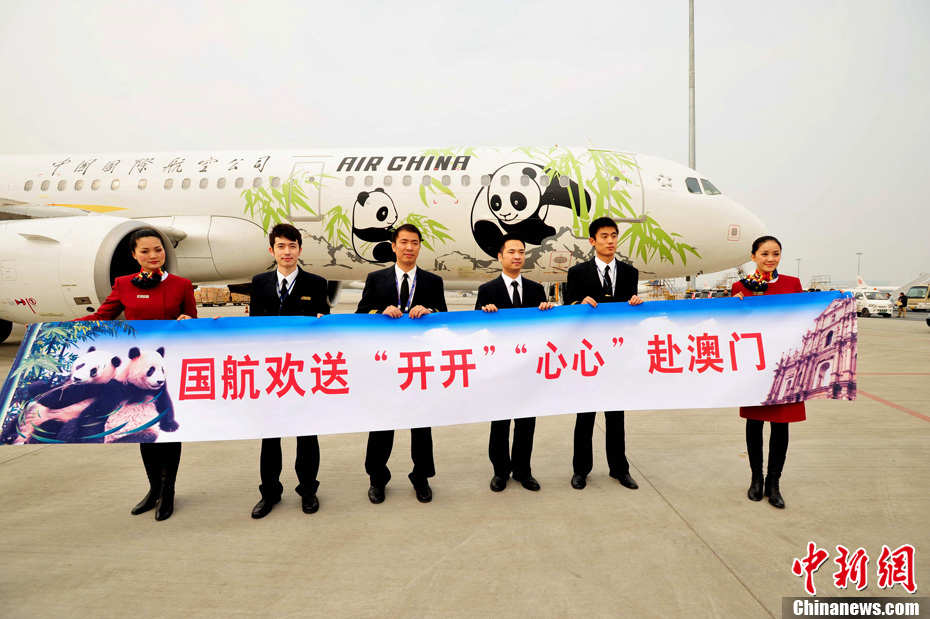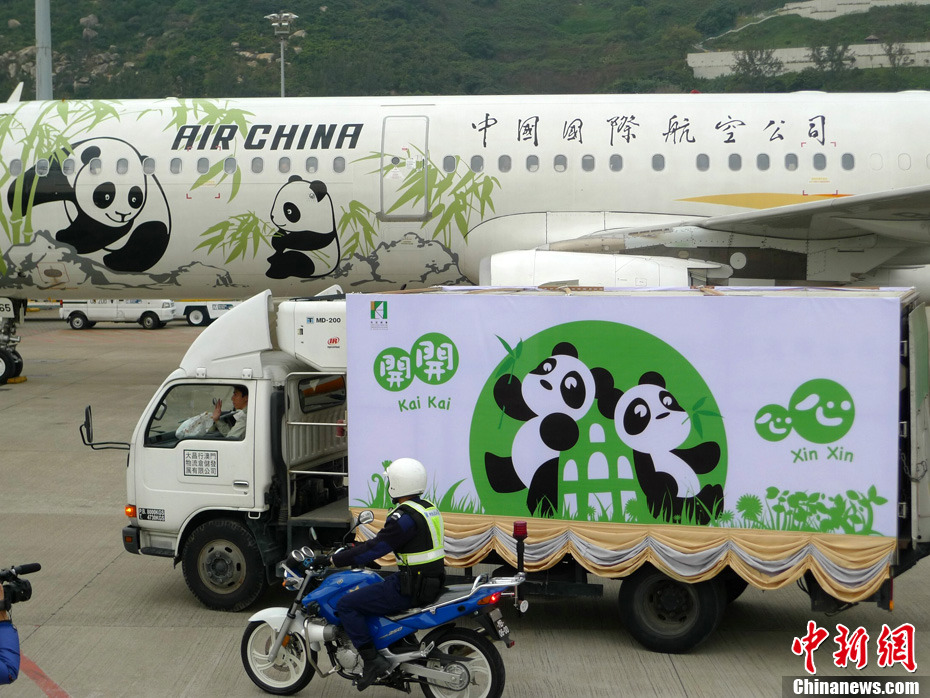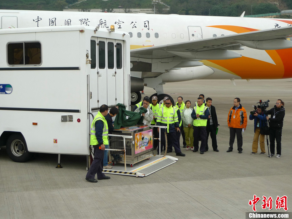 12月18日上午,中央赠澳大熊猫欢送仪式在成都大熊猫繁育研究基地的科学探秘馆广场举行。仪式后,工作人员将装运“开开”、“心心”的专用笼子搬上专车,开离成都大熊猫繁育研究基地,赴成都双流国际机场。中新社发 安源 摄