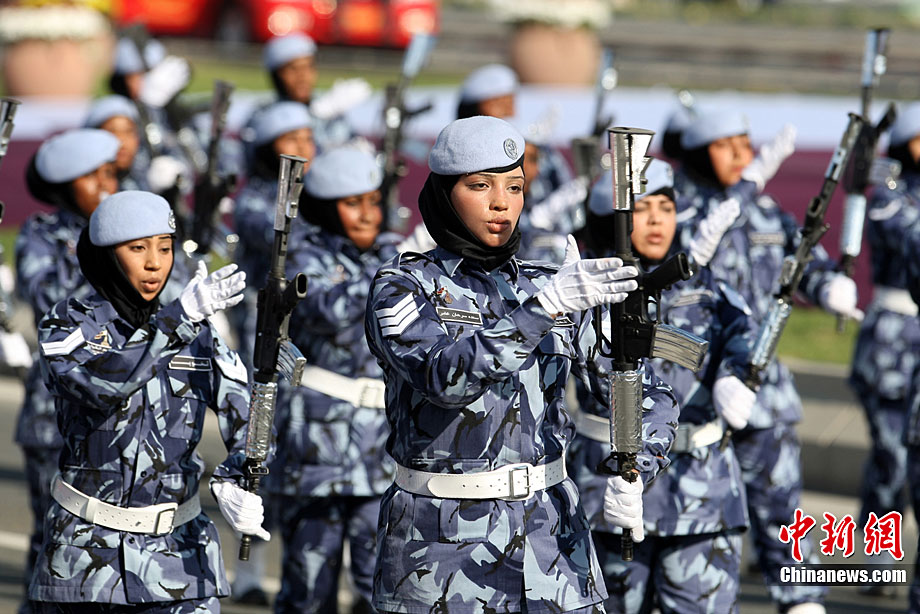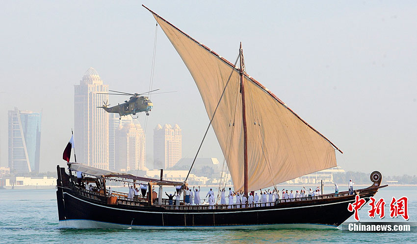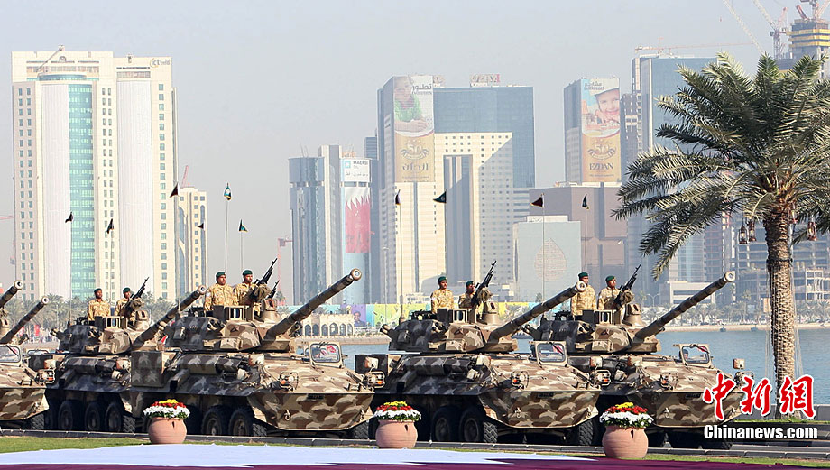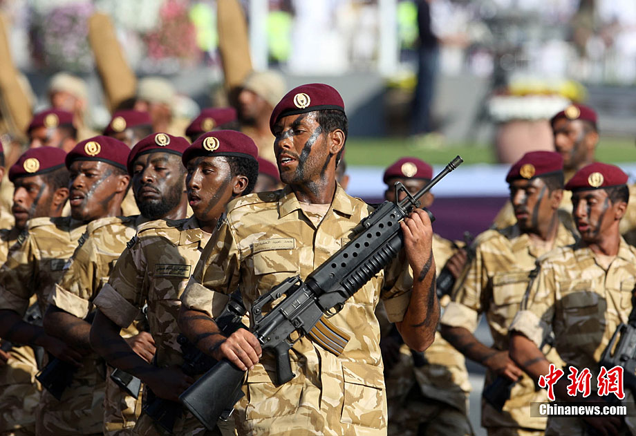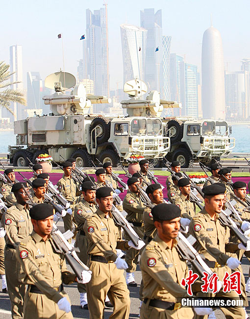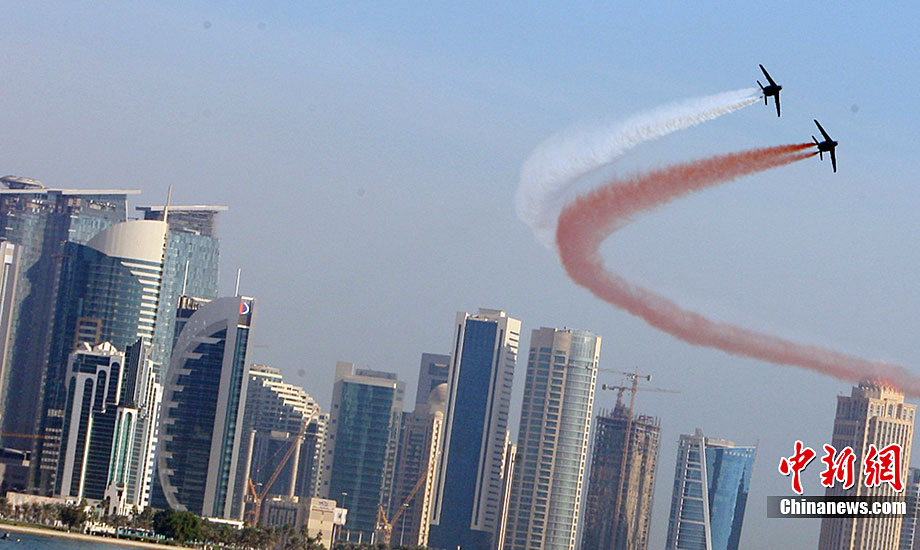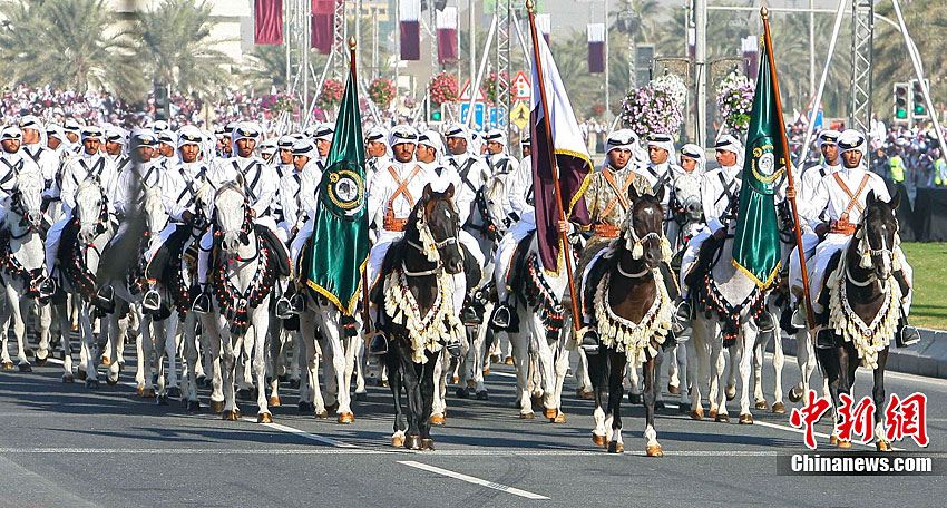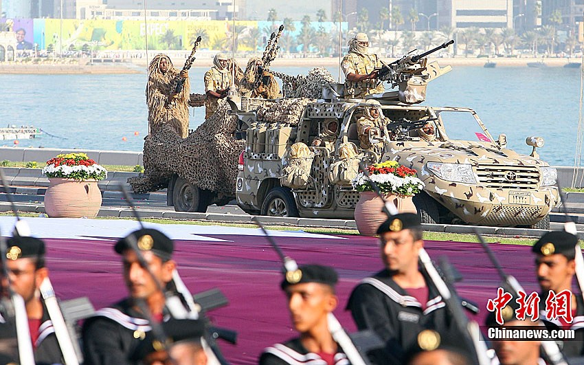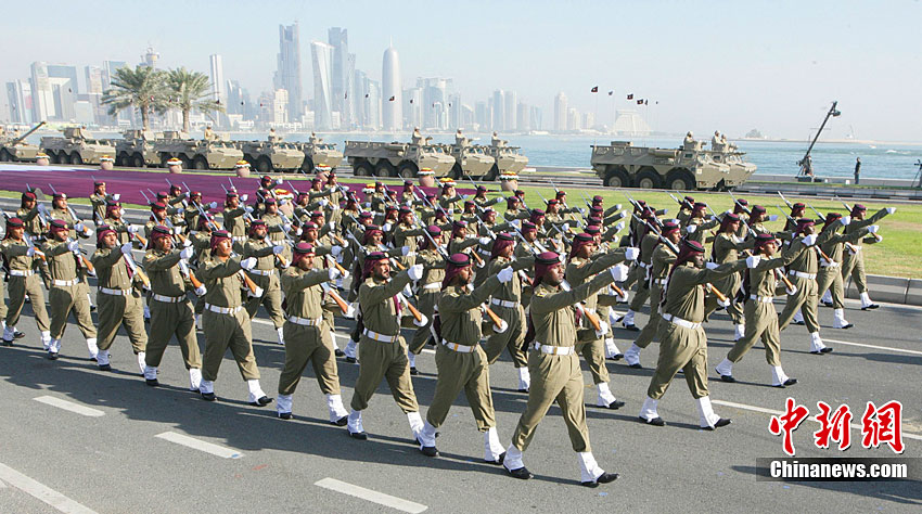 当地时间12月18日,卡塔尔首都多哈的海边大道上举行了盛大的国庆日阅兵式。