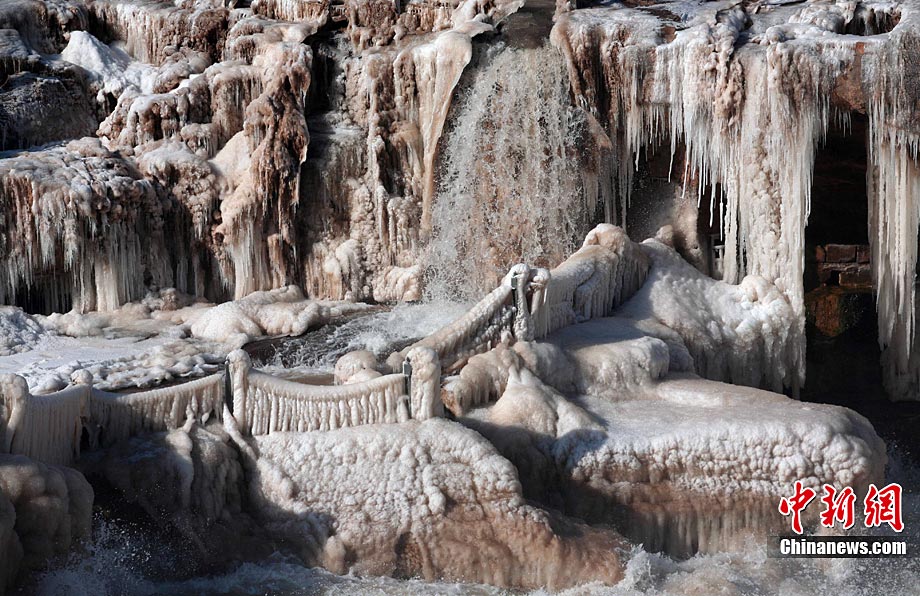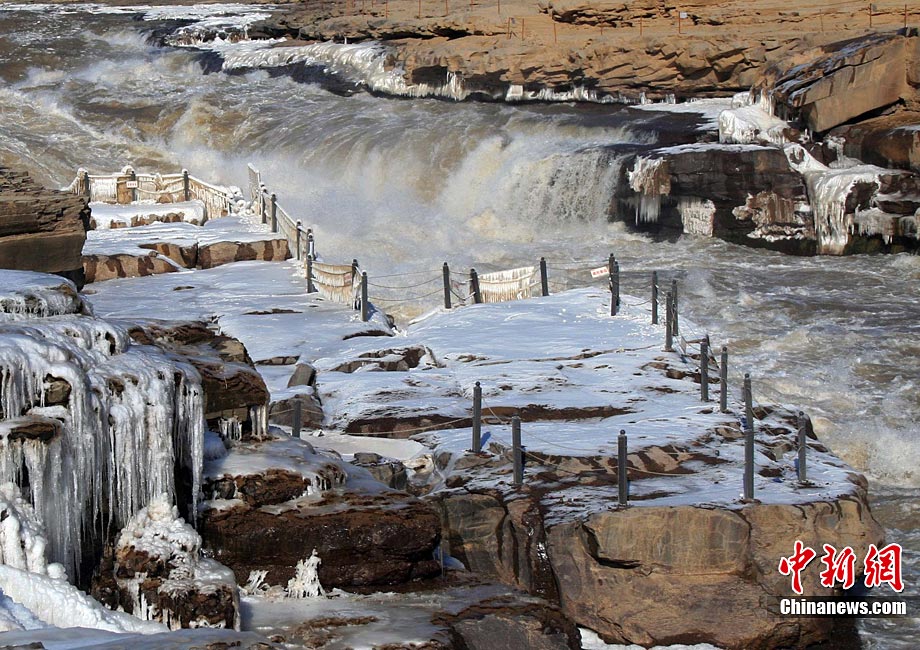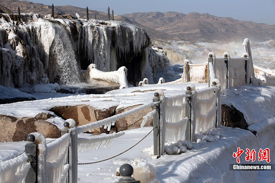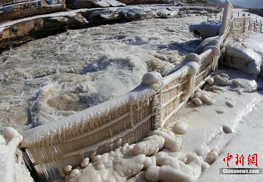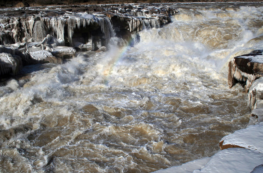 黄河壶口冰冻瀑布美景引人入胜