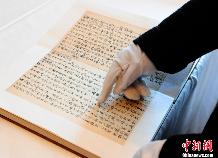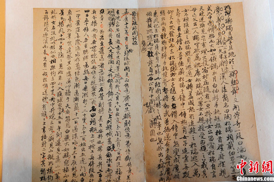 12月20日,国宝级钓鱼岛历史文献《(<浮生六记>卷五)册封琉球国记略(<海国记>)》钱梅溪手抄本原件在北京开拍,这是开拍前展示的原件实物。 中新社记者 侯宇 摄