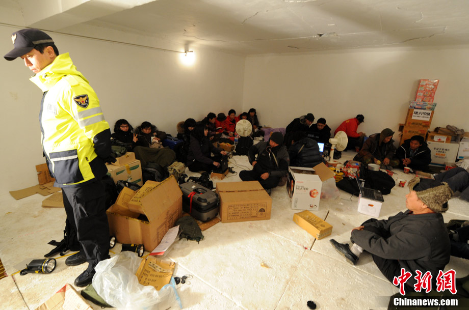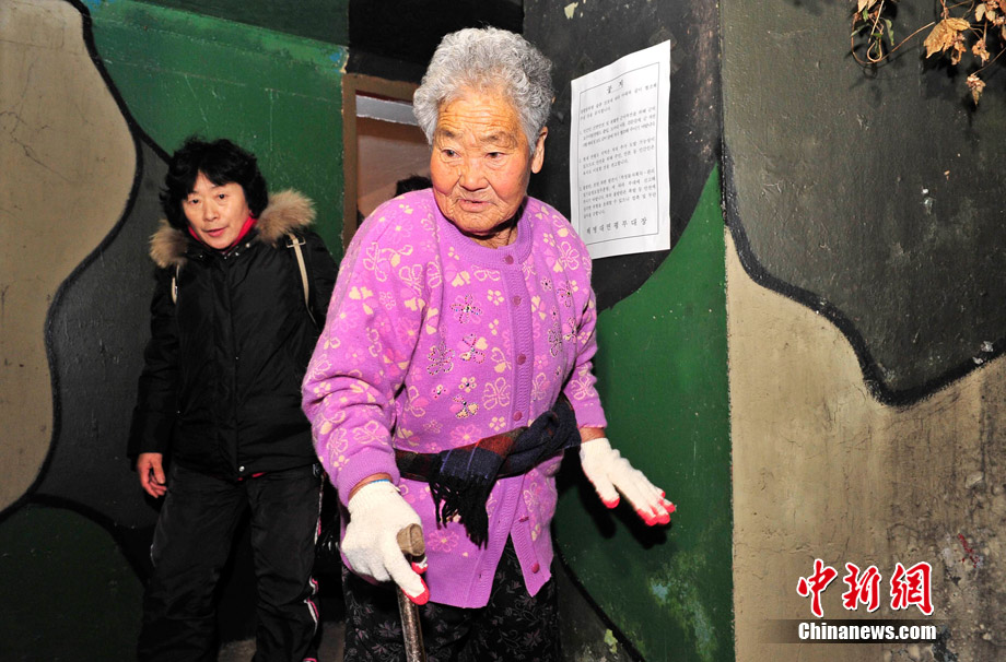 12月20日,在韩国延坪岛,居民在韩国军方实弹射击训练结束后离开防空洞。韩国军方相关负责人表示,当地时间12月20日下午2时30分(北京时间20日下午1时30分)左右开始的延坪岛海上射击训练,当地时间3点30分许实际上已结束。