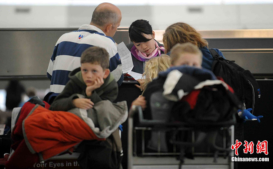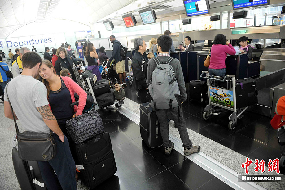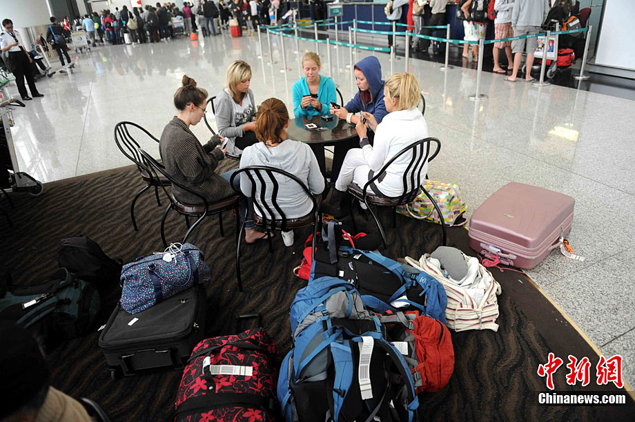 欧洲严寒及大风雪持续,香港航空交通继续大受影响。21日再有多班往返香港和伦敦的航班要取消,而往返香港和欧洲的航班亦延误。图为一些旅客滞留在香港国际机场,玩扑克消磨时间。中新社发 谭达明 摄