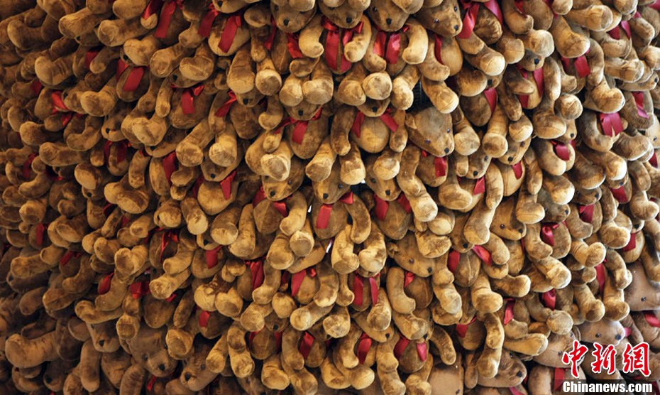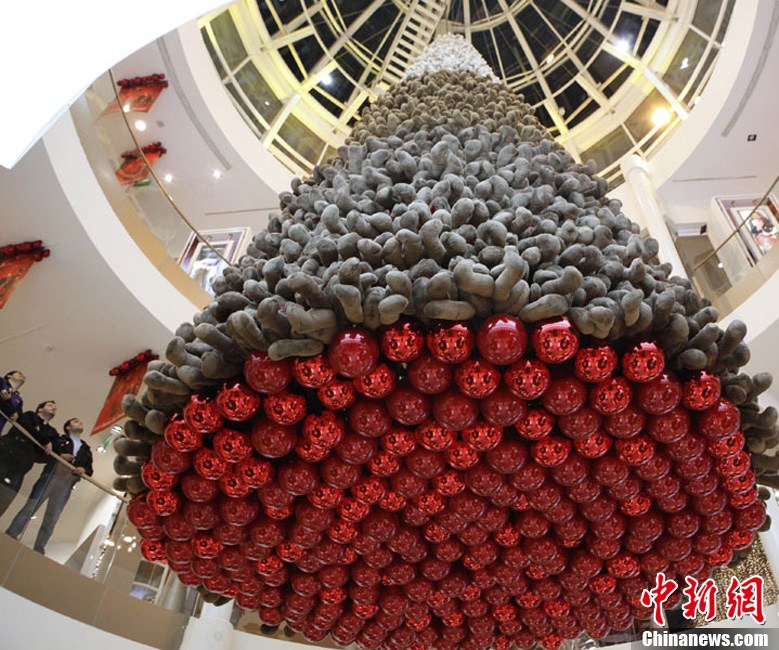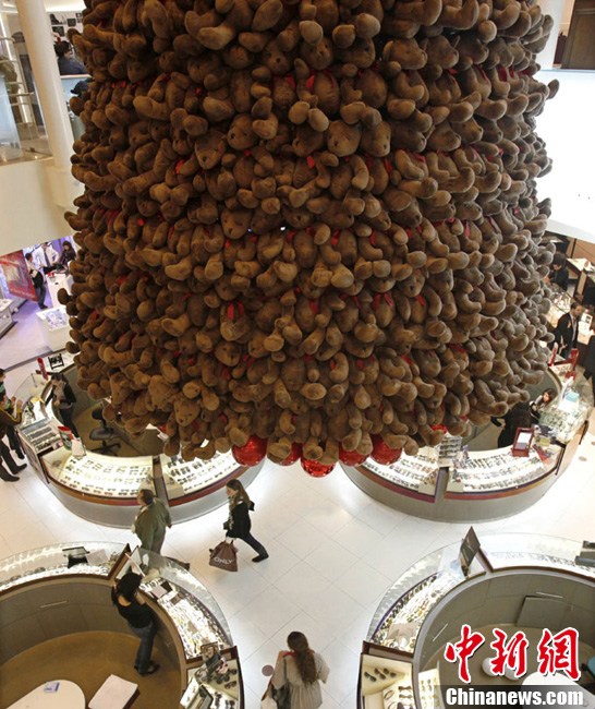 12月20日,在黎巴嫩首都贝鲁特一家商场,上千只泰迪熊组成的圣诞树状装饰物悬挂在天花板上。在圣诞即将到来之际,黎巴嫩首都贝鲁特举行了一项名为“小小的熊,大大的心”的慈善活动,出售2000只泰迪熊的收益将会捐给黎巴嫩的自闭症患者。