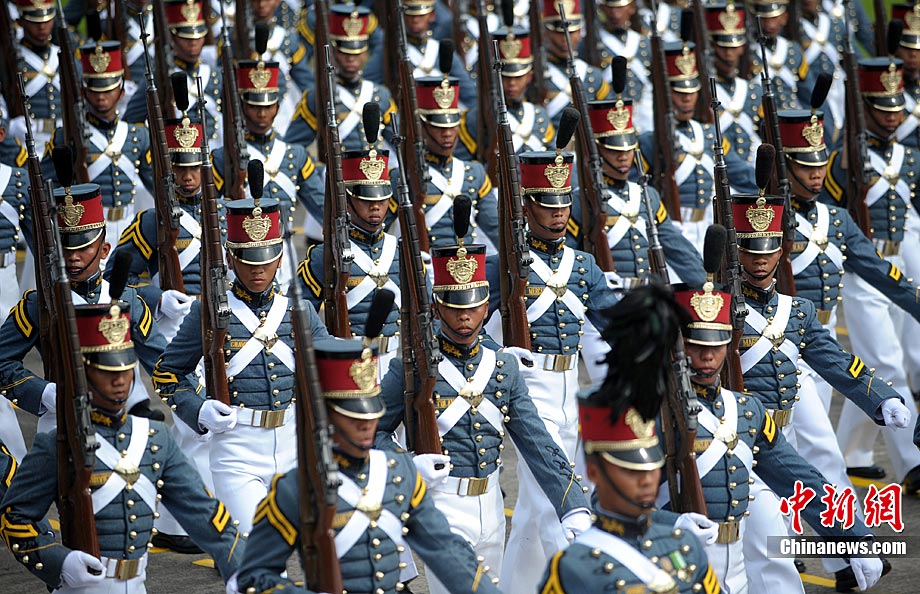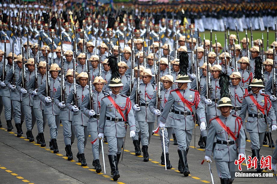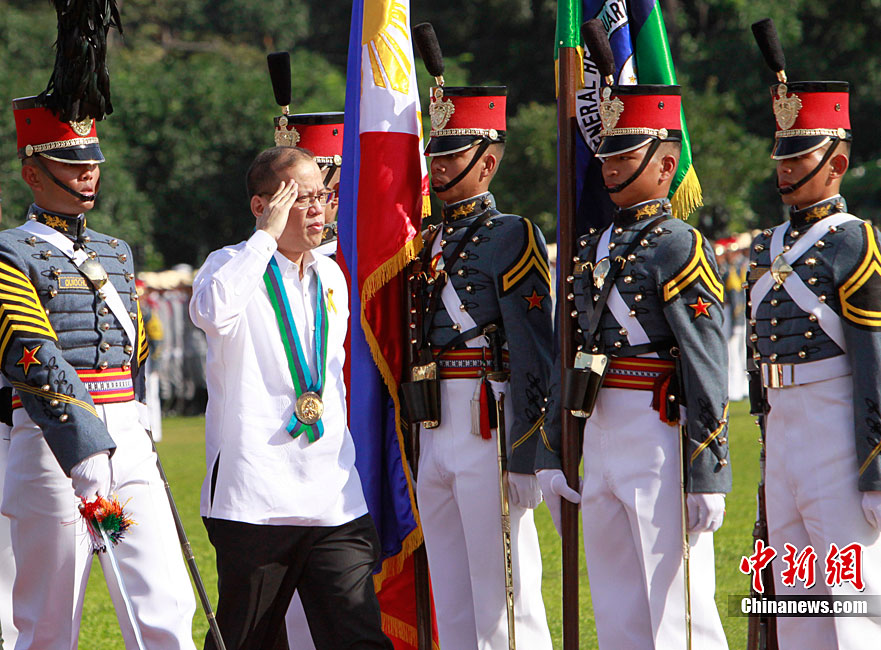 当地时间12月21日,菲律宾建军75周年阅兵式在菲律宾奎松城举行。菲律宾总统阿基诺三世视察了阅兵式。