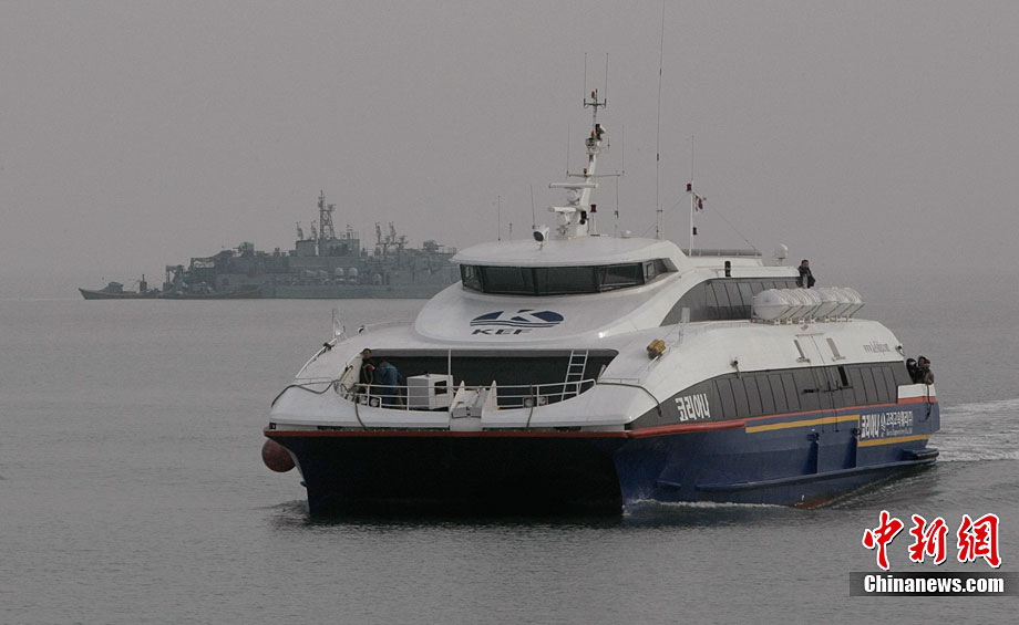 12月21日,韩国,居民和士兵乘船抵达延坪岛港口。当日,仁川港前往延坪岛的航线重开。图为复航后首艘民用船只抵达延坪岛。